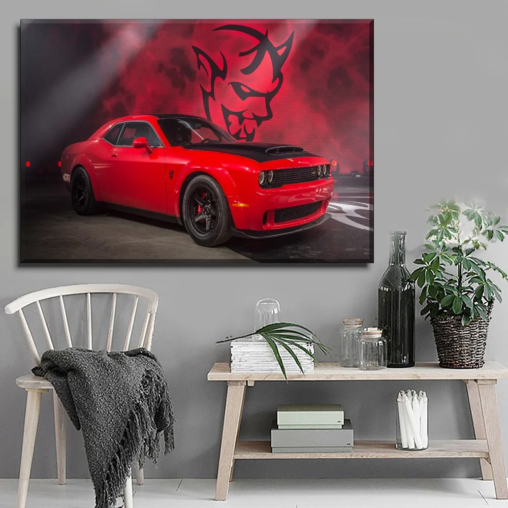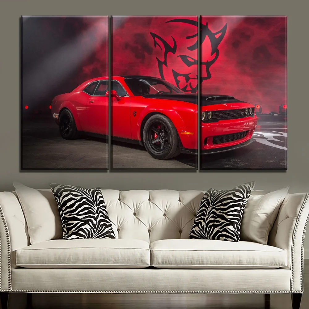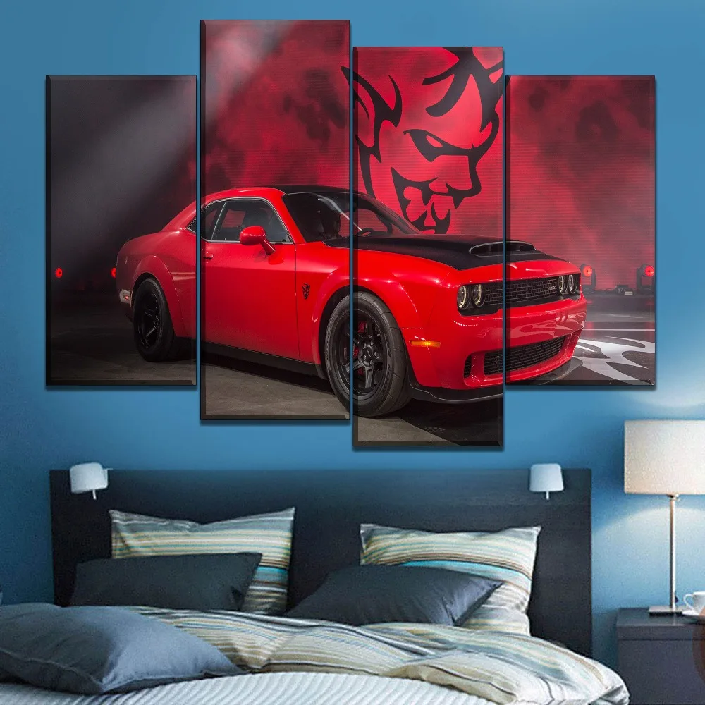 5 Panel Red Muscle Sports Car Dodge Challenger Modular Poster Canvas