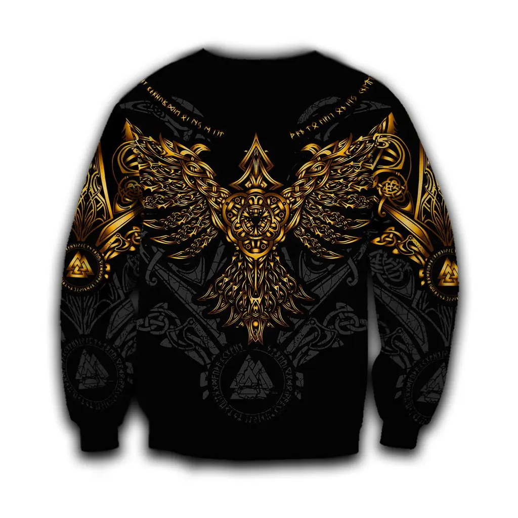 Красивая толстовка унисекс люкс с 3D-принтом викингов, Хугин, Золотая татуировка, пуловер, повседневный спортивный костюм, Мужская толстовка DW0352
