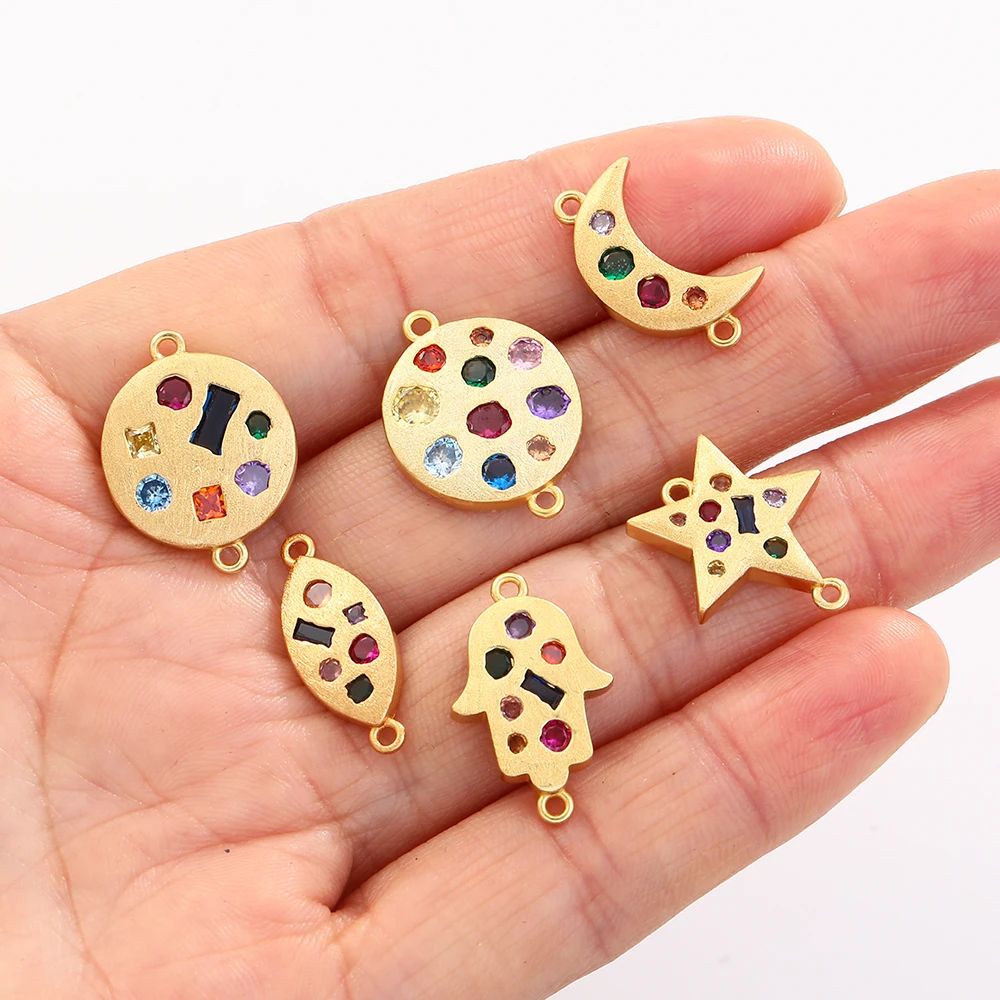 Подвески в виде Луны, звезды разъемы для изготовления ювелирных изделий, дизайнерские подвески для рукоделия, медный красочный Циркон