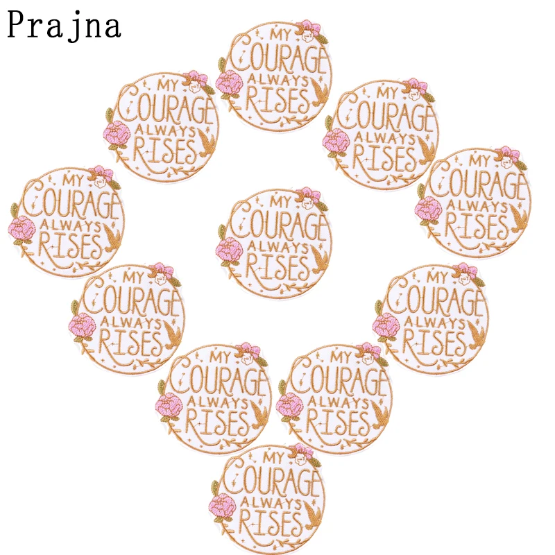 Круглая нашивка Prajna с надписью, нашивки утюгом для одежды, мультяшная вышитая полоска на одежде, Цветочная наклейка, значок аппликация из букв MOQ:10 шт/1 шт