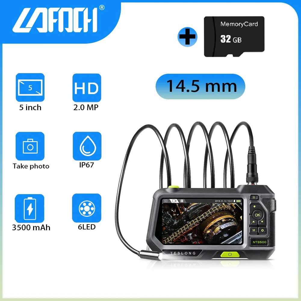 14,5 мм Автофокус промышленный эндоскоп инспекционная 1 м Камера с 5 дюймов Экран 1080P HD IP67 Водонепроницаемый Бороскоп с картой памяти на 32 ГБ