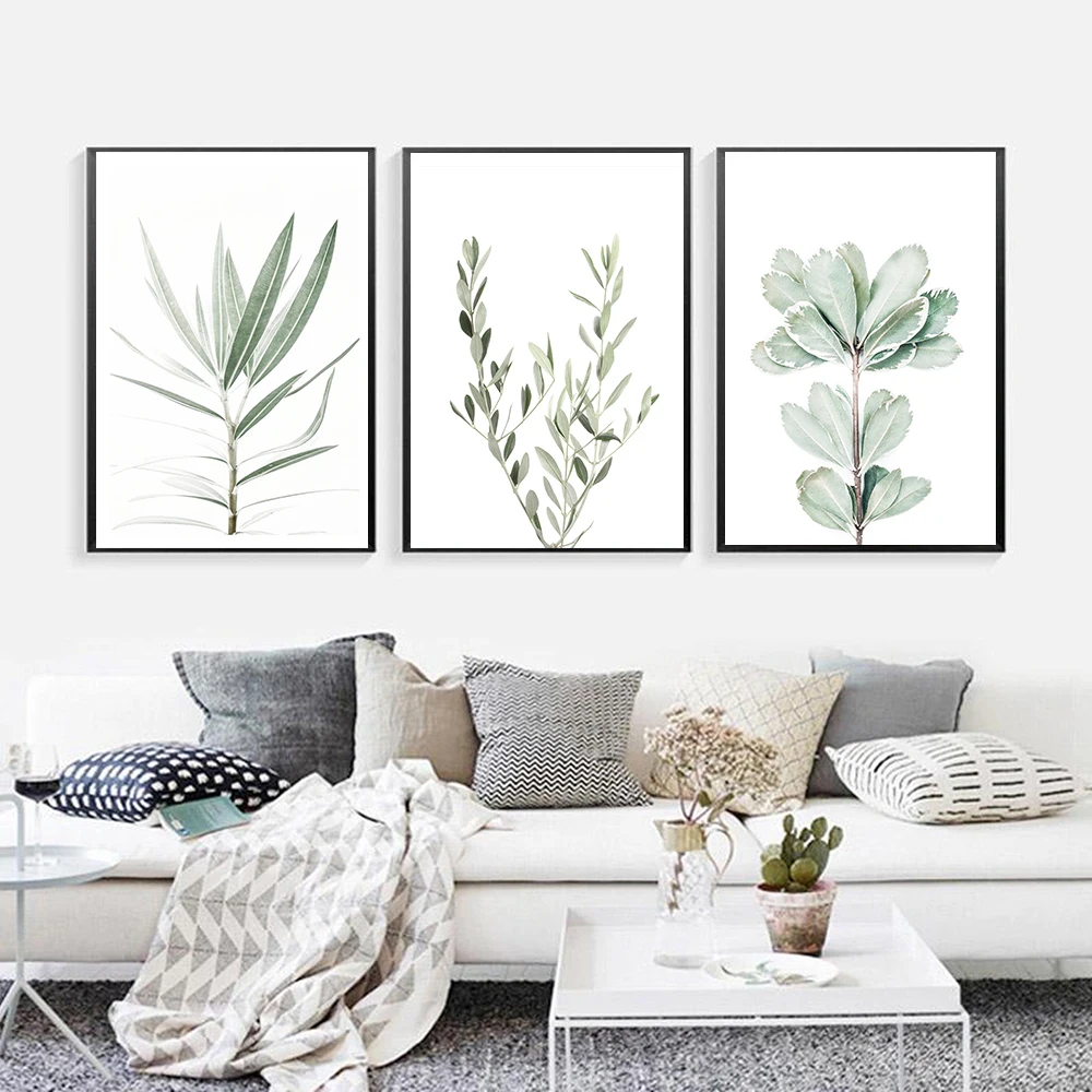 Акварельные листья настенная живопись холст зеленый стиль растение ...