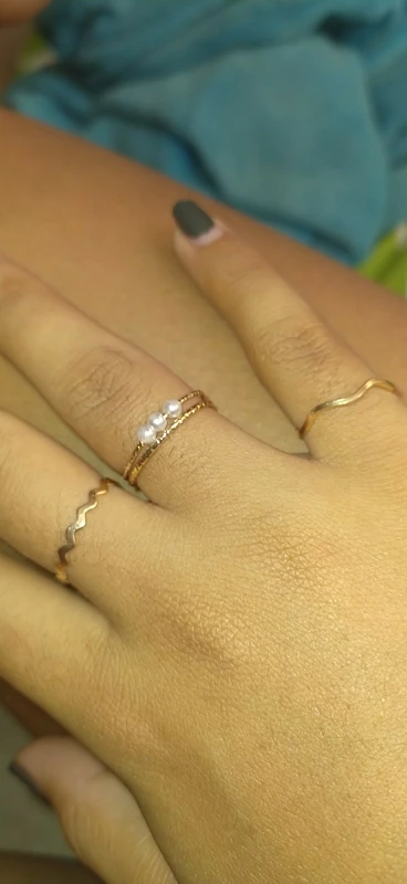 Здравствуйте! Колечки милые, тоненькие, можно сочетать со многими вещами. Но качество не очень, у колечка с бусинками, видно клей и бусинки немного потёртые, а так в целом не плохо. Пришли за 21 день, были упакованы в пакетик с пупыркой.