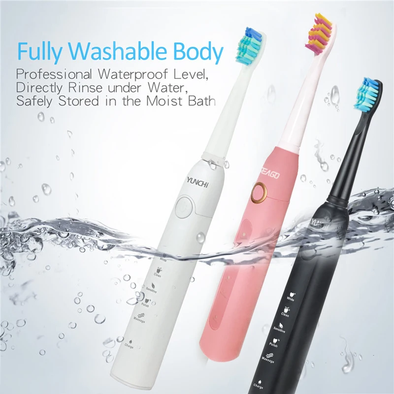 Зубная щетка Seago, электрическая, водонепроницаемая, с 2 сменными ...