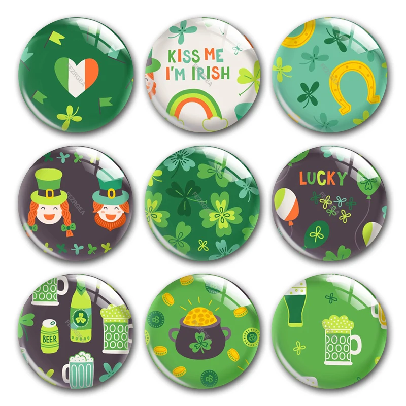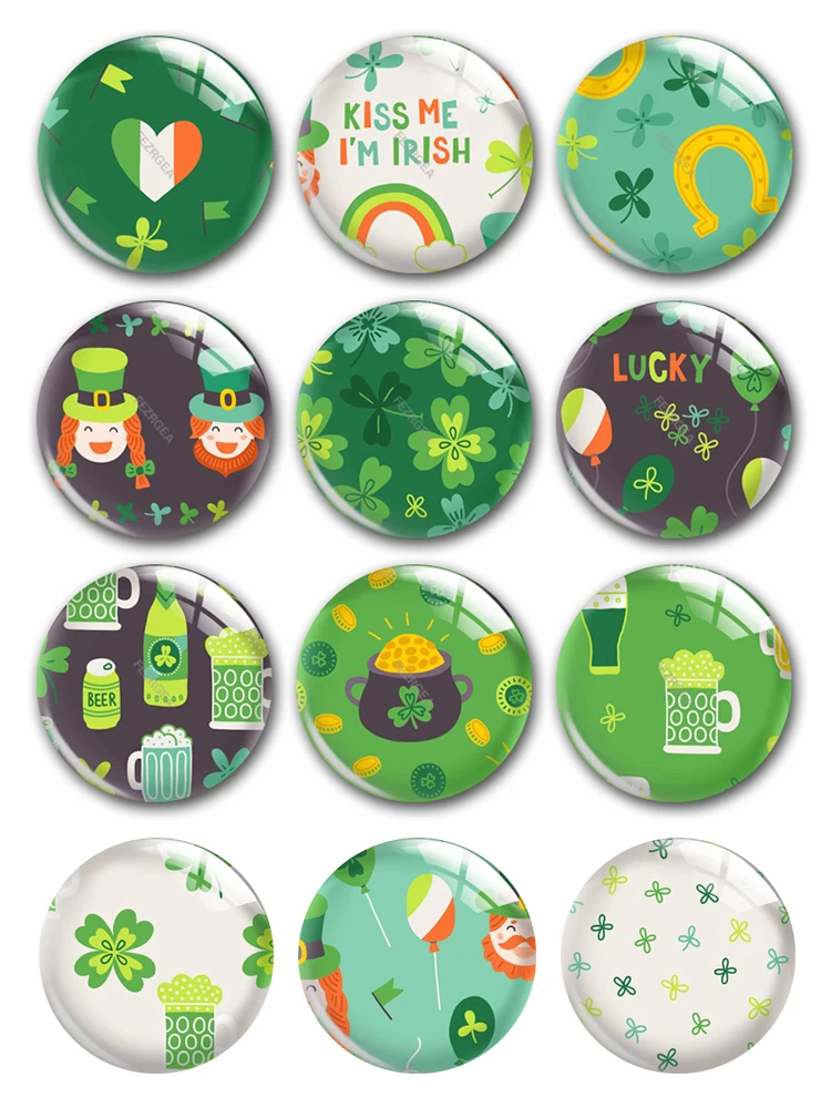 Круглый стеклянный кабошон с зеленым клевером на День Св. Патрика, ...