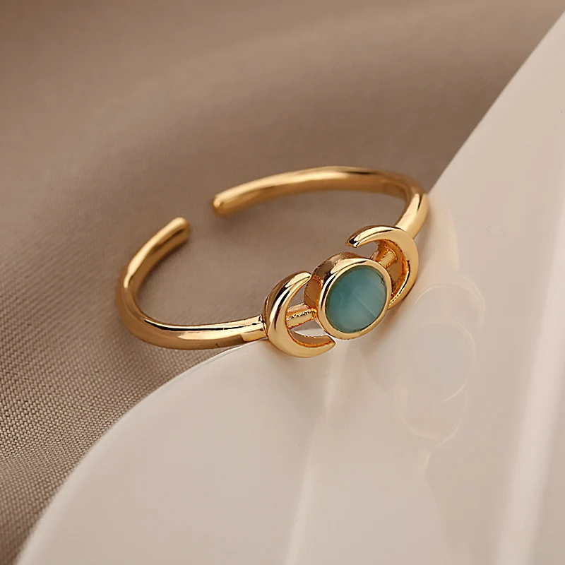 Кольцо с лунным опалом для женщин, простое Открытое кольцо из нержавеющей стали, застежка аксессуары для пальцев, кольца, ювелирные подарки