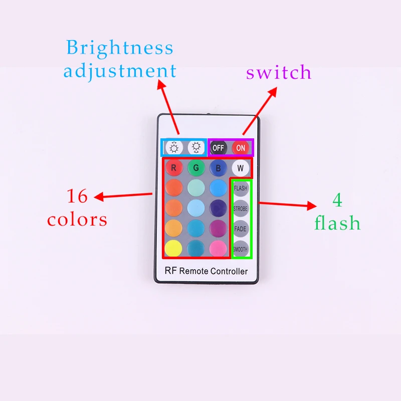 10. Принять светодиодный контроллер RF, который имеет 24 кнопки, функция каждой кнопки как таблица ниже: