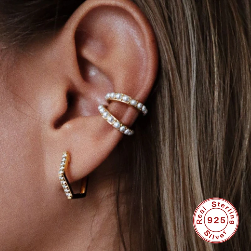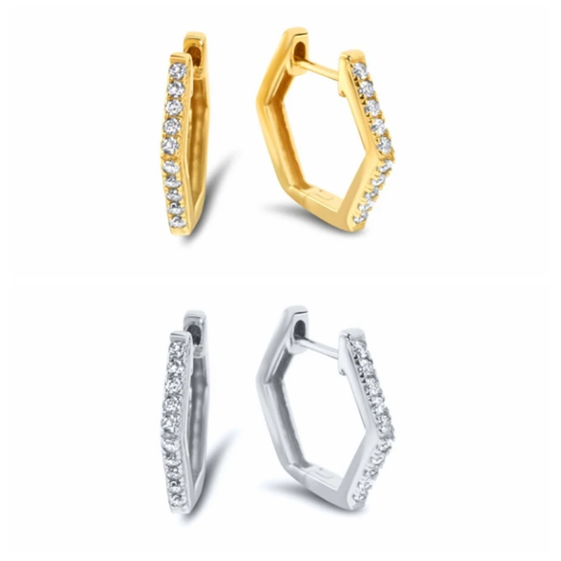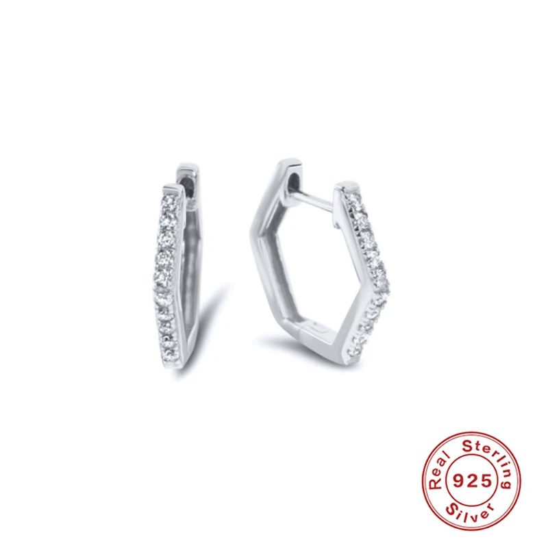 Автоклав 100% 925 стерлингового серебра с шестигранной головкой Форма обруч серьги, нержавеющая сталь, слуховая косточка с пряжкой пирсинг серьги для Для женщин Bling CZ серьги