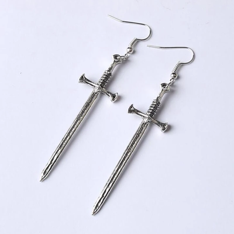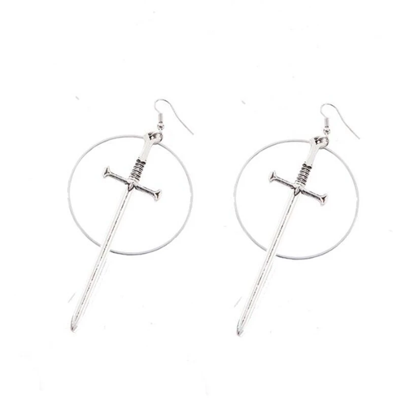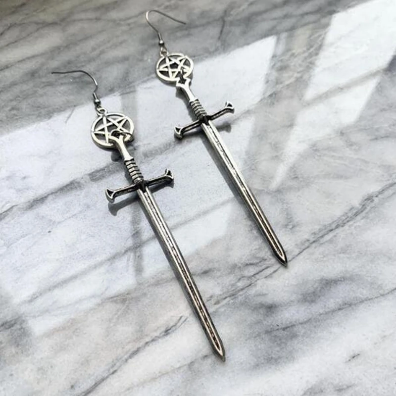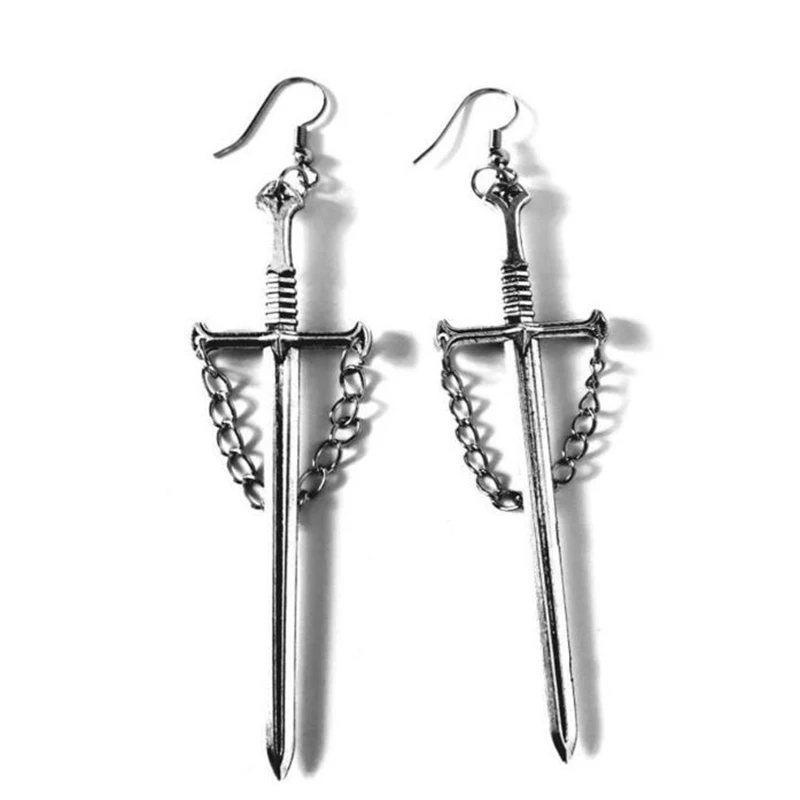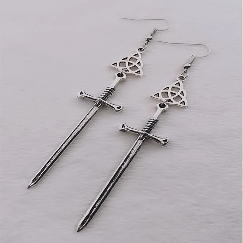 Длинные висячие серьги-кольца в готическом средневековом стиле