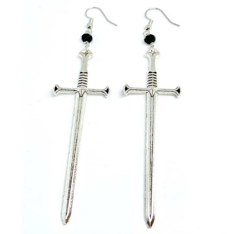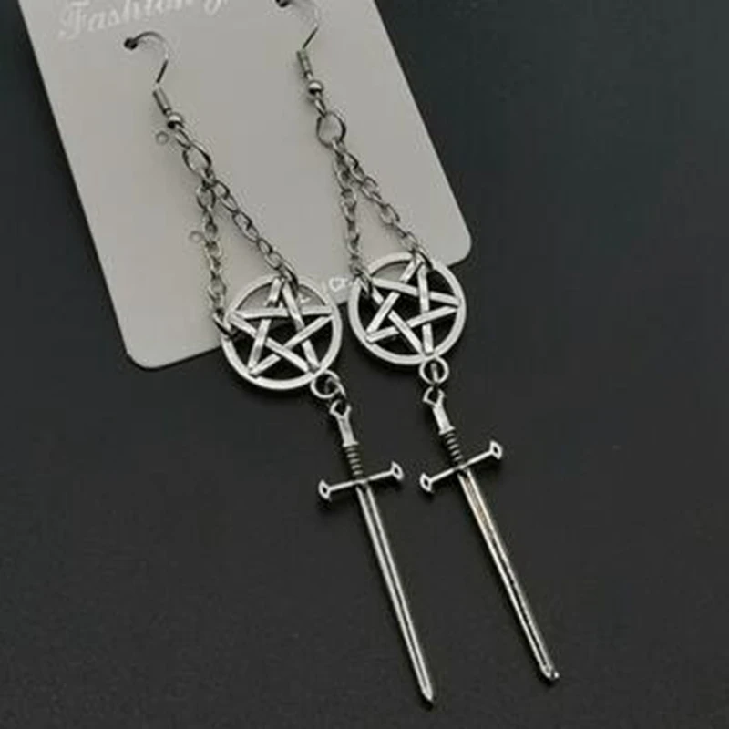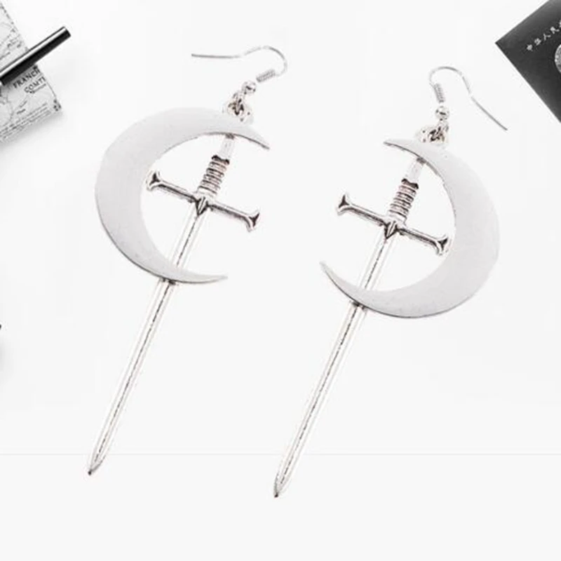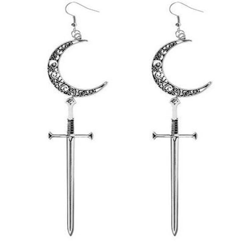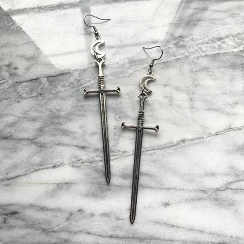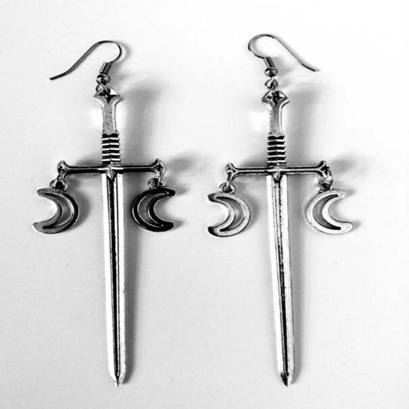 Длинные висячие серьги-кольца в готическом средневековом стиле