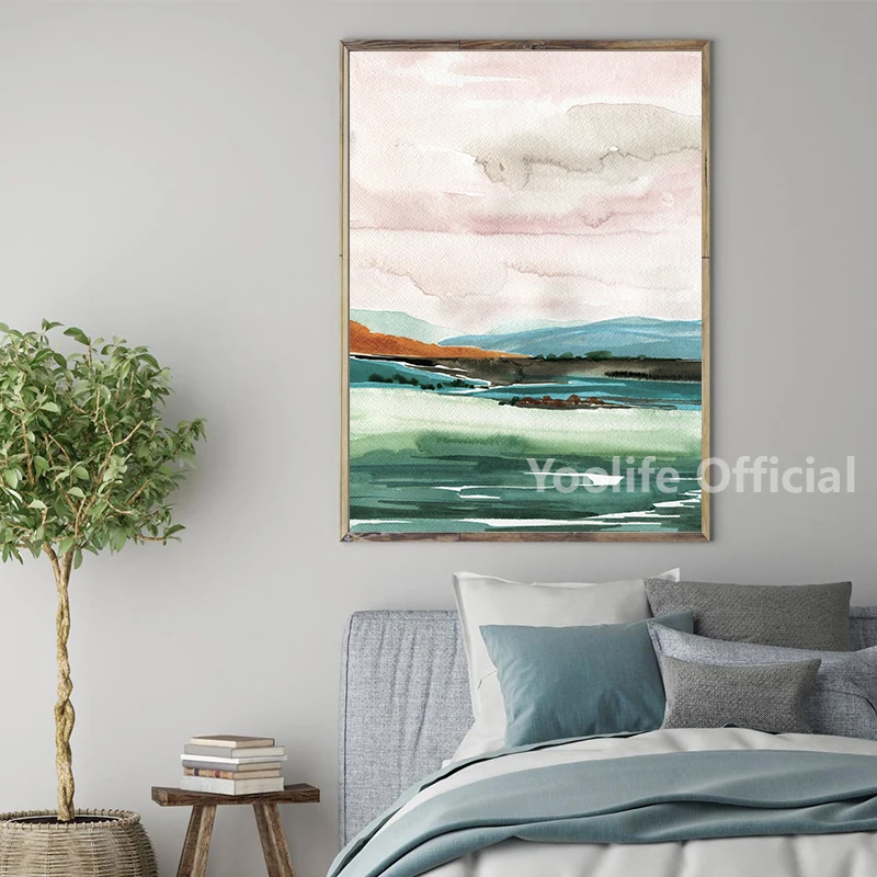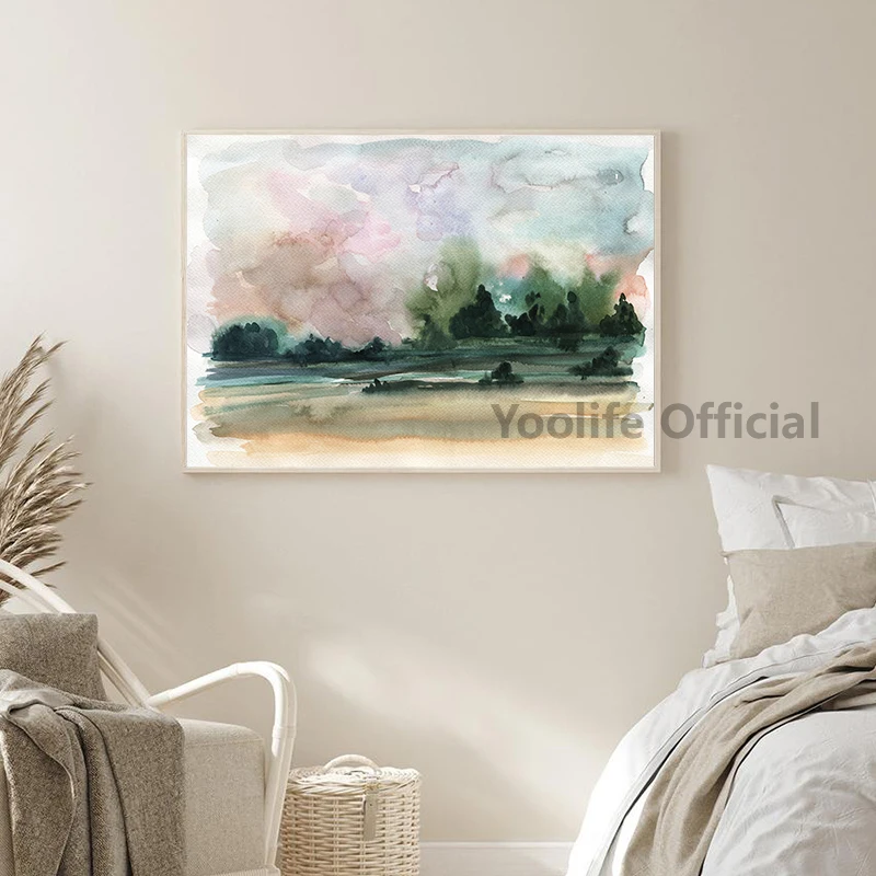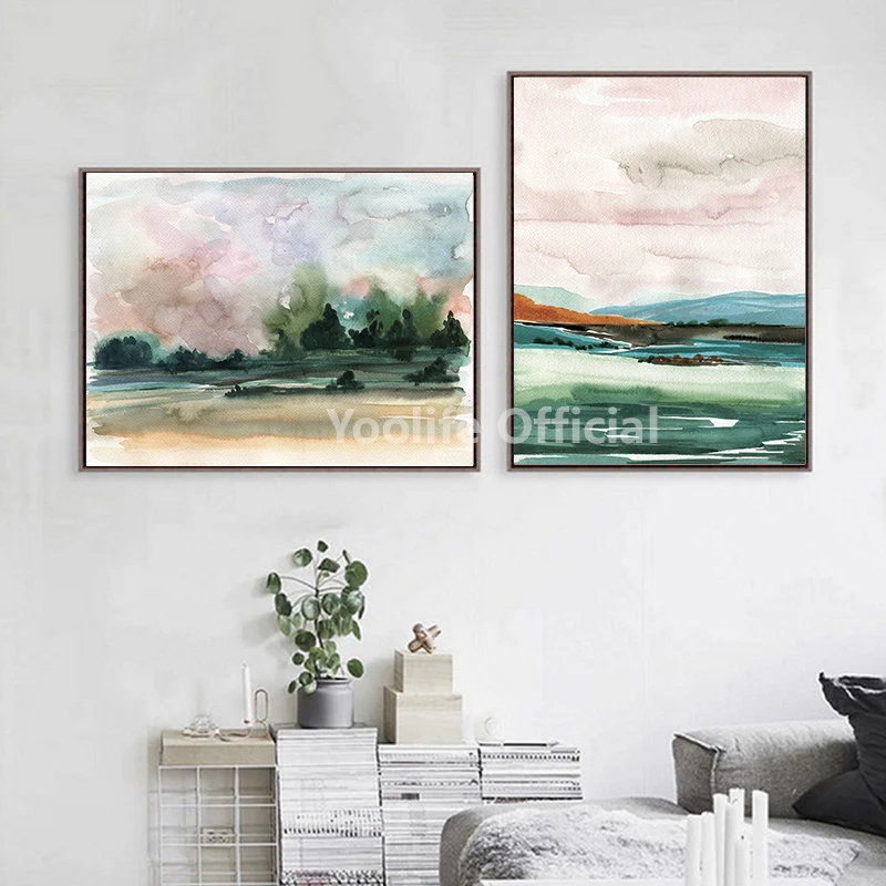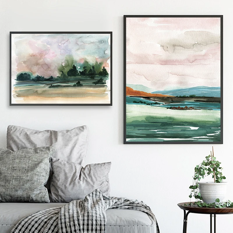 Абстрактная Пастельная пейзаж Акварельная живопись настенные художественные картины винтажные постеры нейтральное художественное полотно для декора гостиной