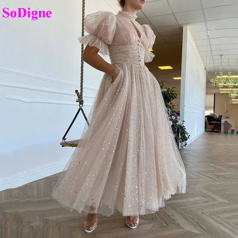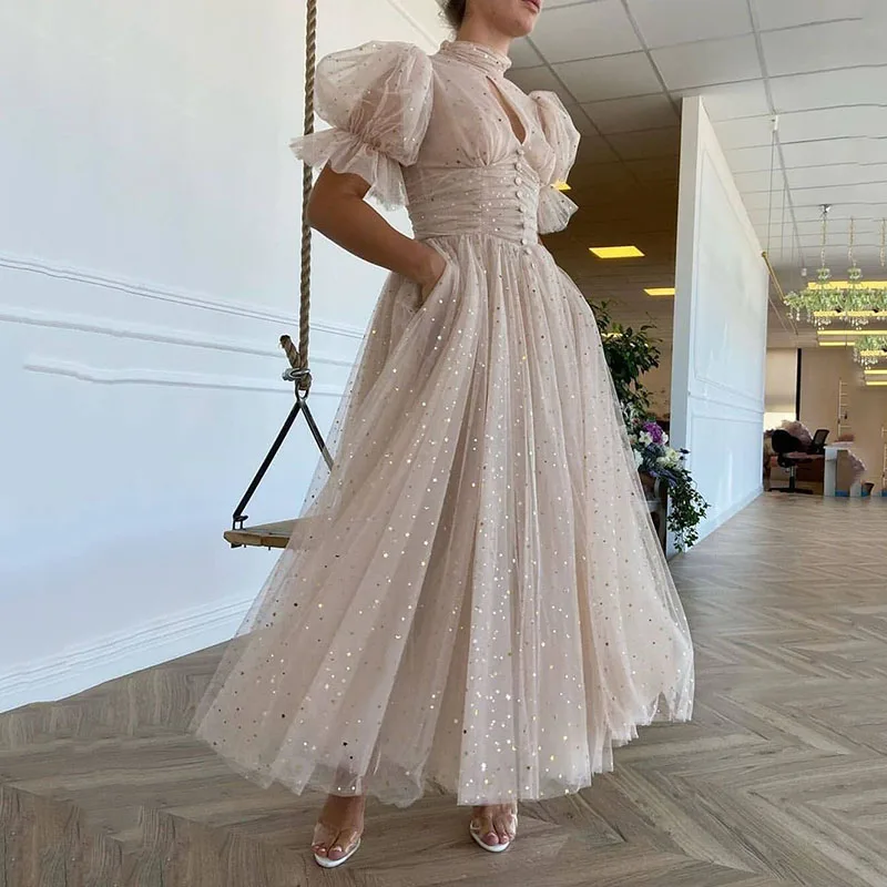Винтажное ТРАПЕЦИЕВИДНОЕ вечернее платье soworth, длинное вечернее платье с пышными рукавами, блестящее Тюлевое платье в горошек для встречи выпускников и выпускного вечера