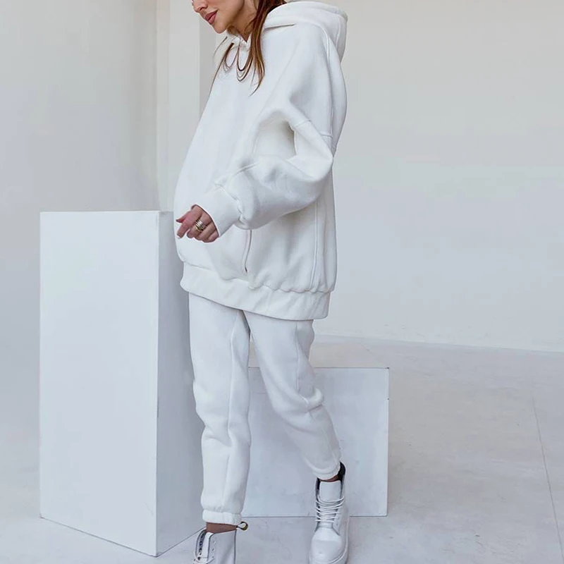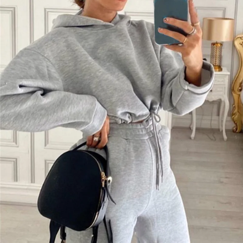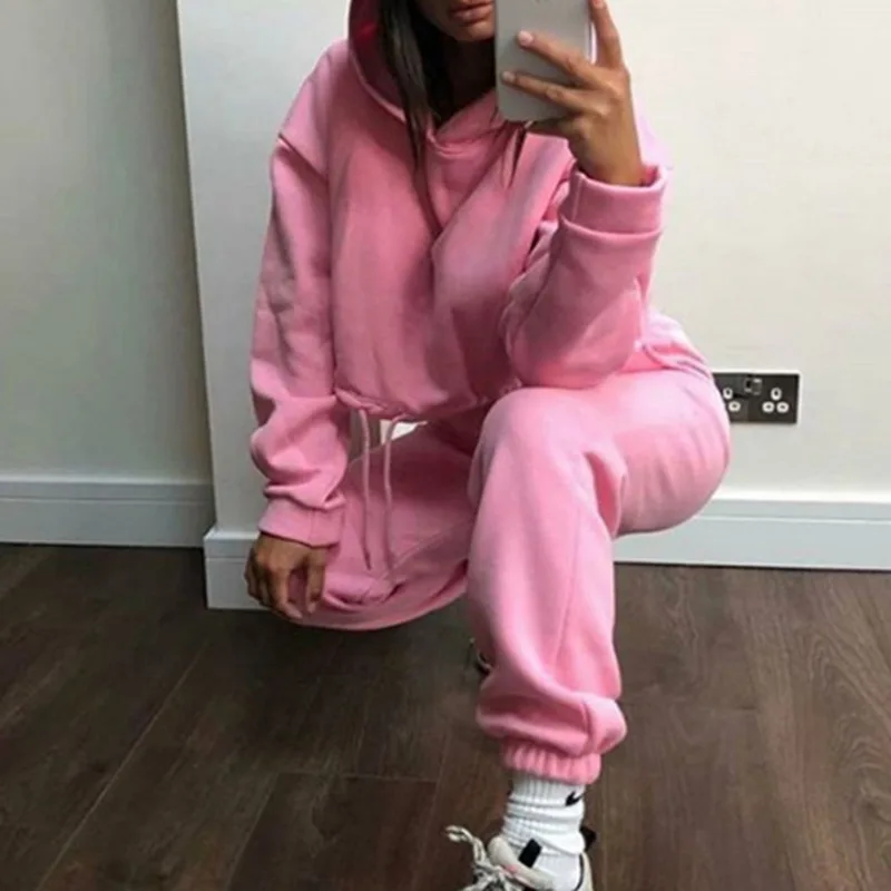 Костюм спортивный женский весенний из двух предметов, толстовка с капюшоном и длинным рукавом