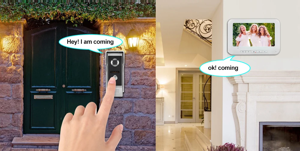 Этот видеодомофон может подключаться к электрическому замку. Вы можете открыть дверь с помощью внутреннего монитора и наружной камеры. Очень удобно! (Примечание: замки не включены в посылка, необходимо купить дополнительно)