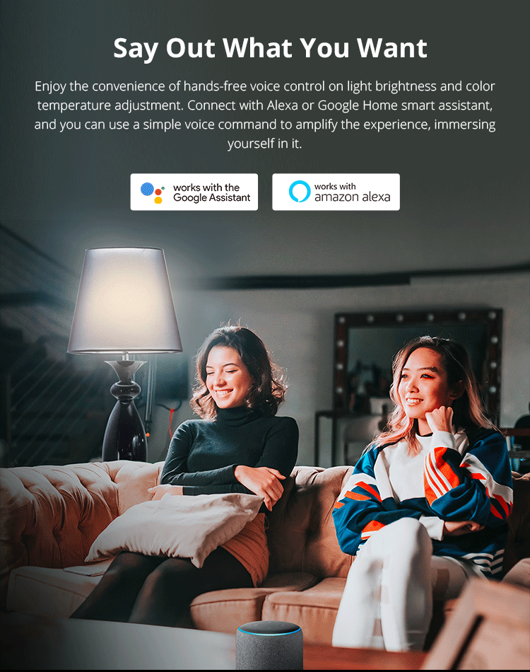 Поддержка голоса для включения/выключения, регулировка яркости и цветовой температуры