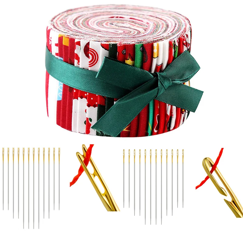 Dailylike Желейная рулонная ткань 60 шт. рулонная хлопчатобумажная ткань полоски для квилтинга, Рождественская ткань для пэчворка + швейная игла