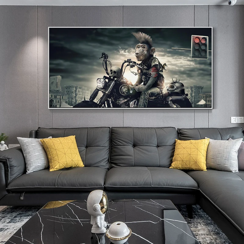 Картины на холсте с изображением мотоциклиста обезьяны, настенные п...