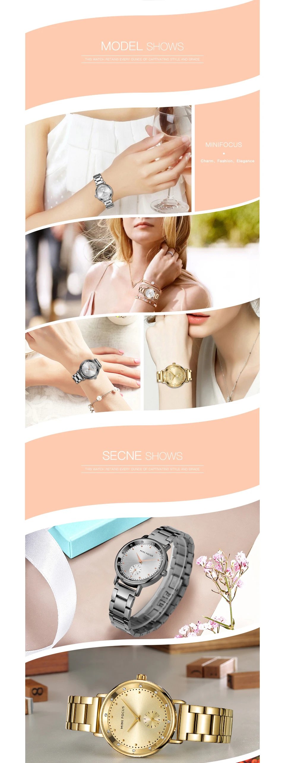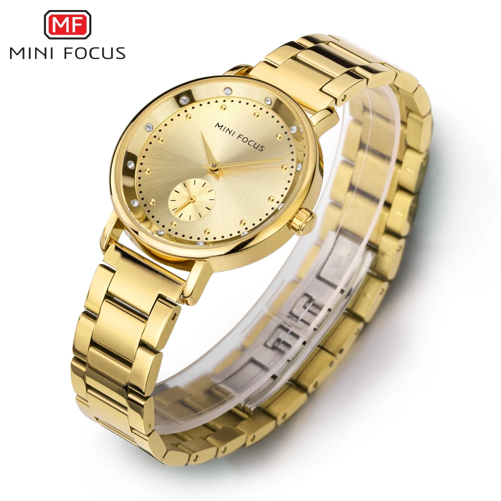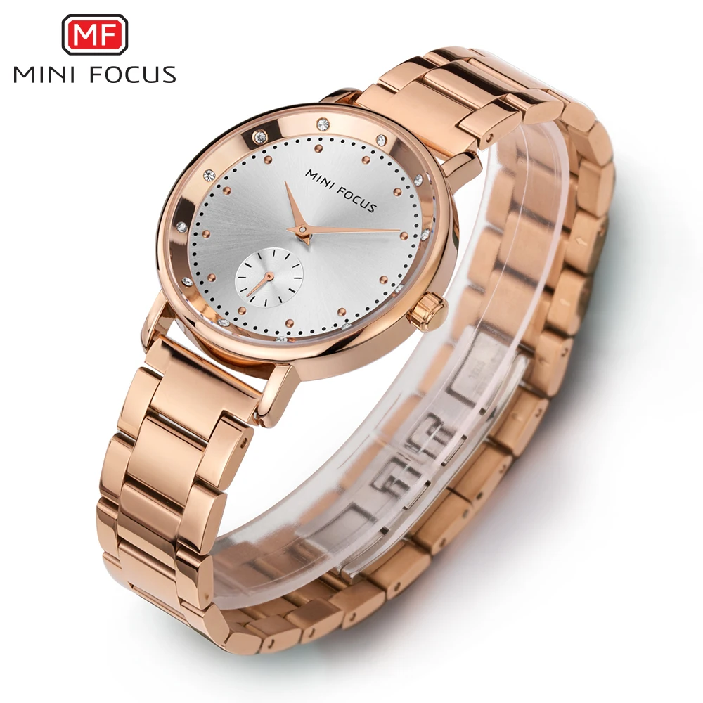 Женские часы MINI FOCUS со сверкающим ремешком, роскошные часы ведущей марки, женские часы, розовое золото, стальной ремешок, 0037