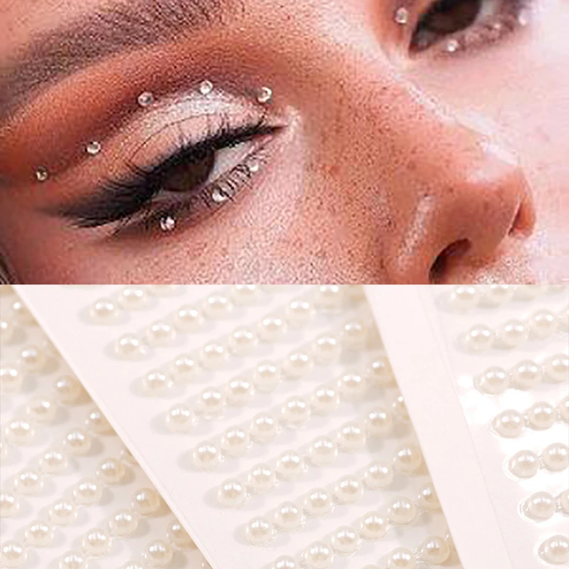 3D наклейки с жемчугом, 3 мм, 4 мм, 5 мм, 6 мм, украшения для лица, тени для век, самоклеящиеся наклейки для лица, тела, бровей, алмазные украшения для ногтей