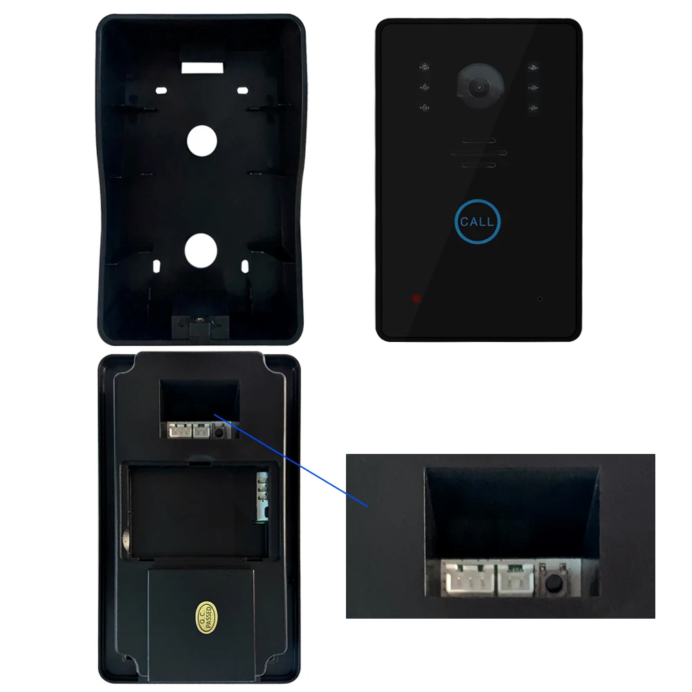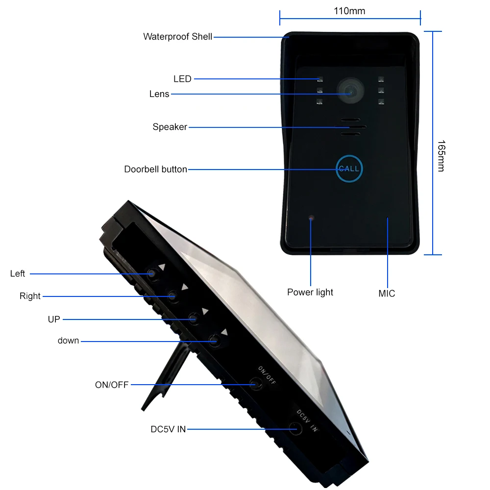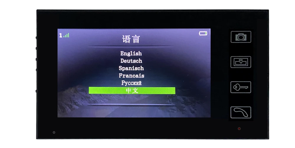 (9) внутренний блок имеет регулировку часов, просмотр и удаление фотографий, выбор мелодии звонка, 6 языков (английский, немецкий, испанский, французский, русский) выбор, пропущенные визиты запрос и удаление. В меню настроек вы можете установить время подсветки экрана, время кольца, время разблокировки, соответствие кода и другие функции работы.