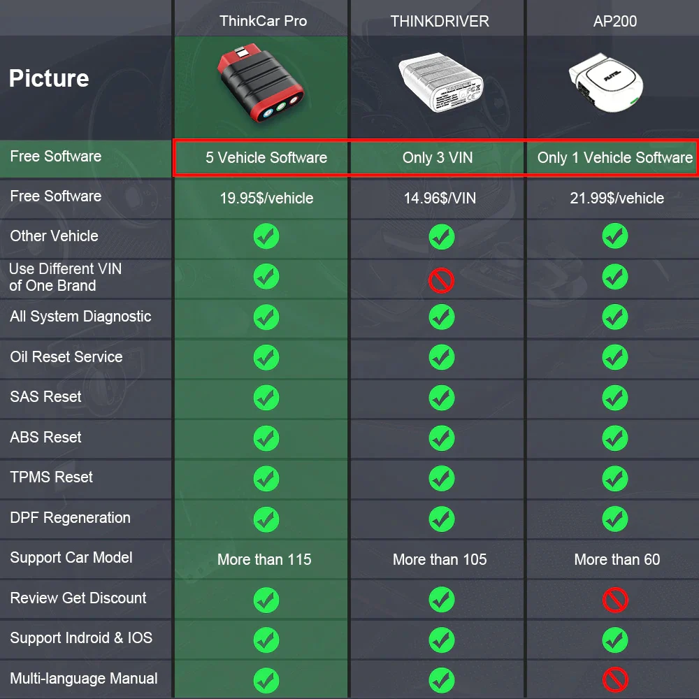 ThinkCar Pro имеет 5 бесплатное программное обеспечение для автомобилей PK Thinkdriver & AP200 & Thinkdiag:
