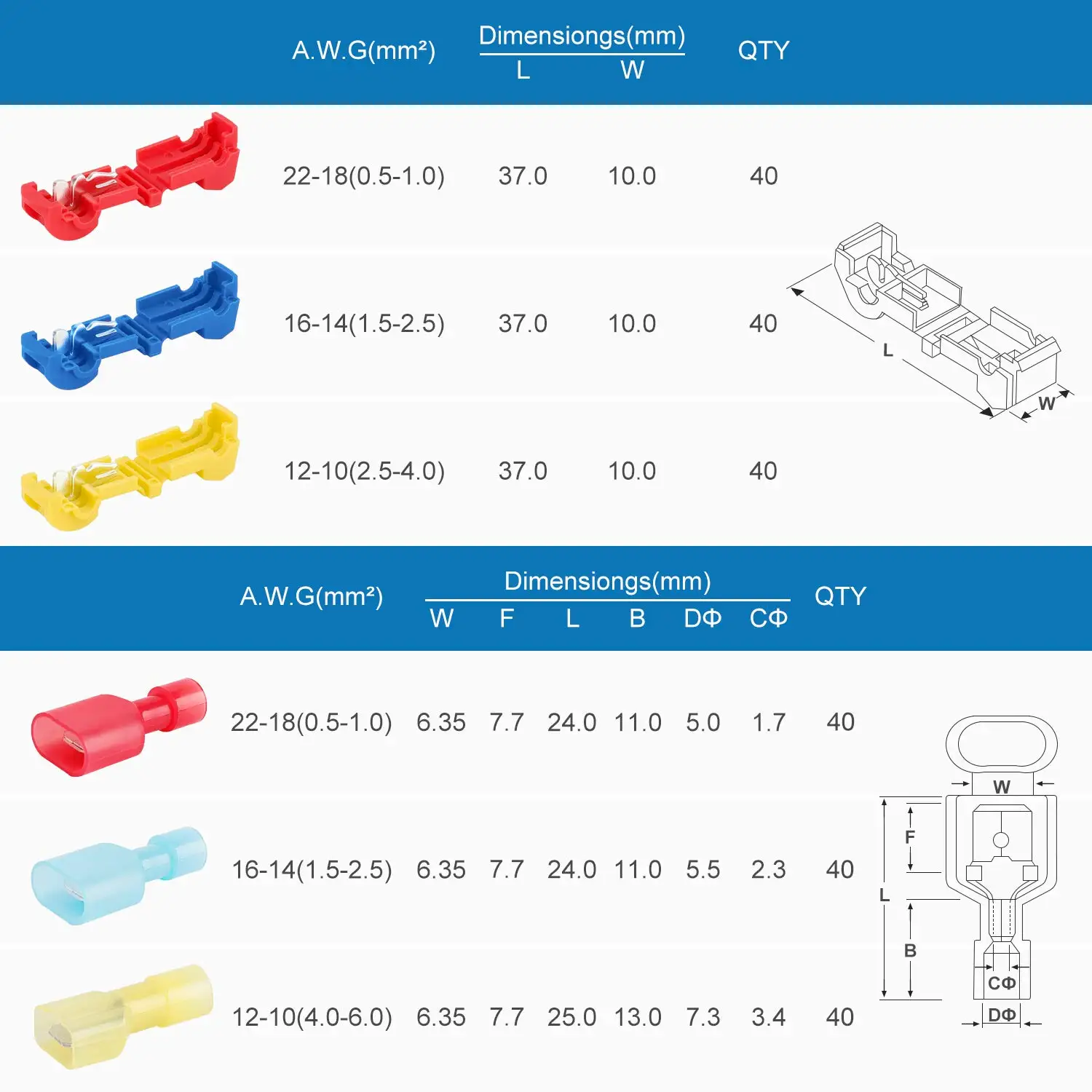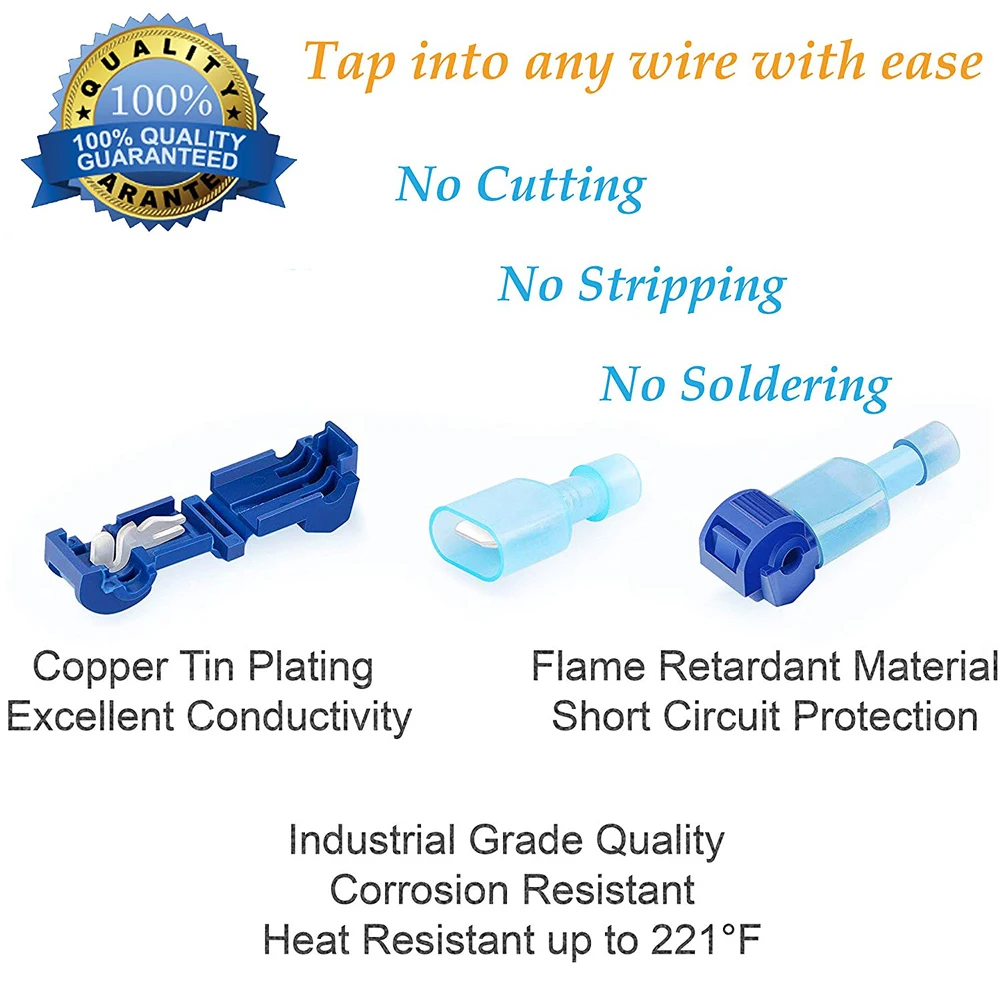 Позволяет быстро и легко вставлять в существующий провод, не требует зачистки проводов, не требует специальных инструментовШироко используется в проводном соединении автомобилей и мотоциклов, домаСоответствует всем соответствующим стандартам США, отлично подходит для нарезания проводовИспользуйте эти самозачистки электрических разъемов для электрического крана в провод в середине пролета без резки или зачистки проводаЭффективно предотвращает замыкание провода