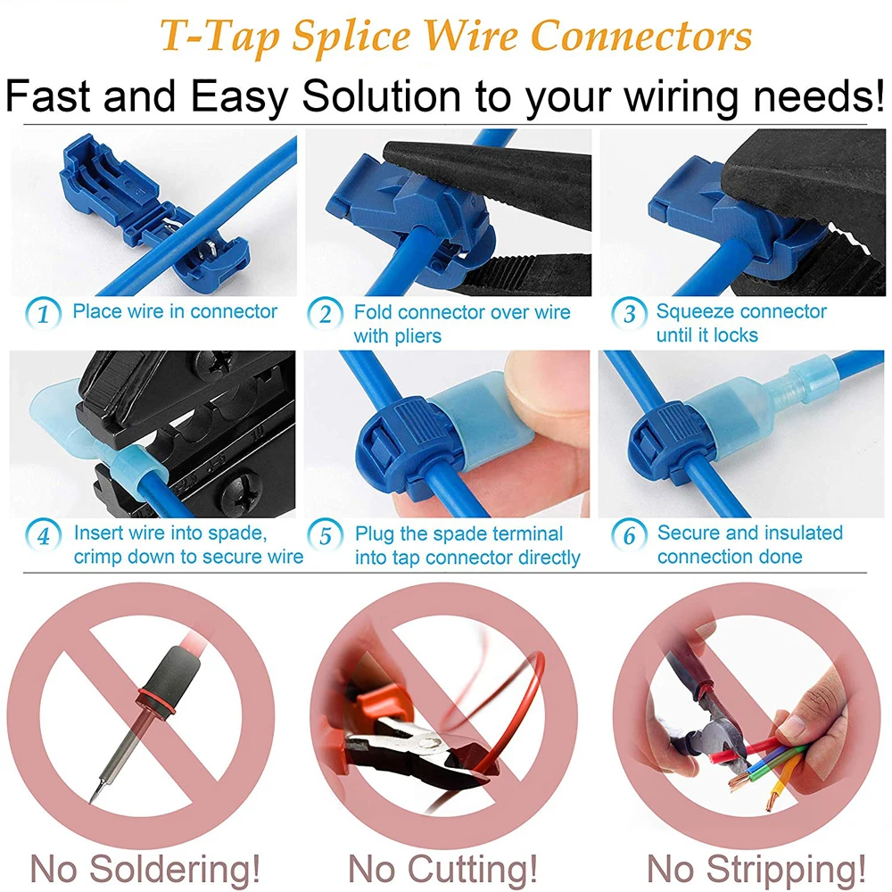 В прошлом проект электропроводки должен сначала прокладывать провод, теперь Kuject new release 240Pcs T-tap wire коннекторы-это новые инструменты для завершения вашего проекта проводки, без зачистки провода.