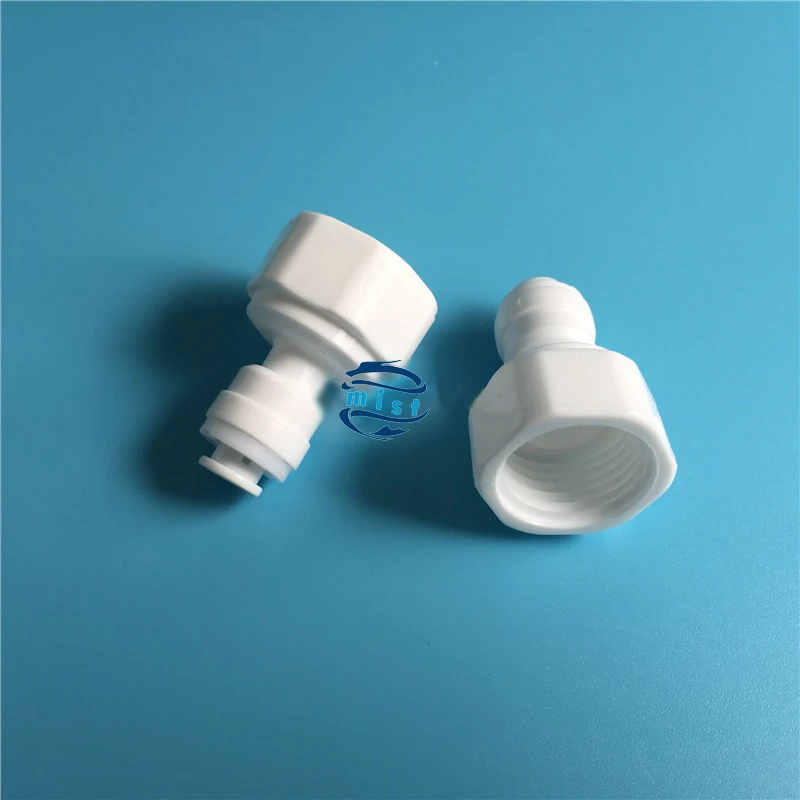 2. Подключите шланг и насос с белыми соединителями 1/2 дюйма, обратите внимание на направление стрелки на входе и выходе на насосе.