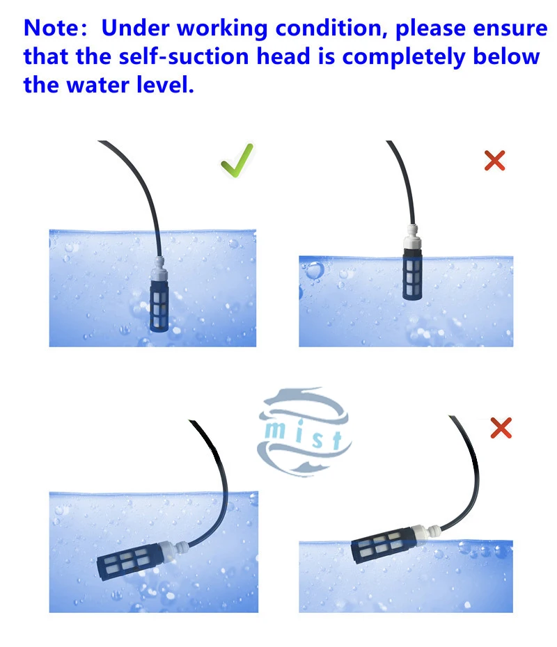 1. Держите Вход воды 3 м полностью погруженным в бак.