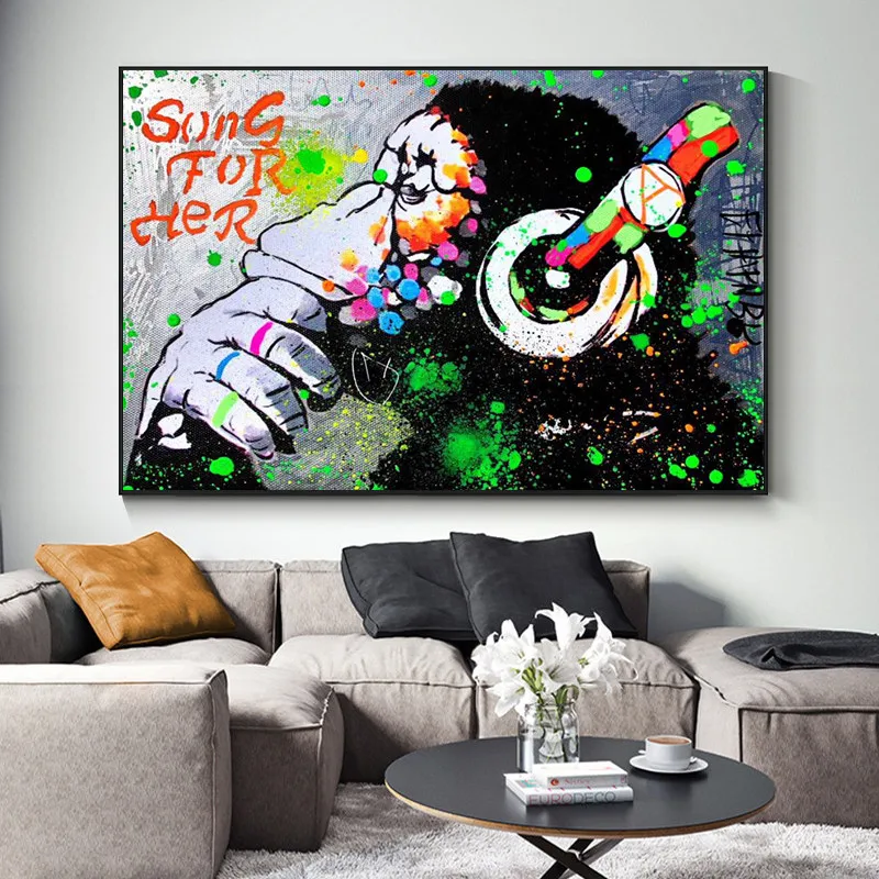 Граффити Цвет обезьяна животное холст картина без рамки Плакаты и принты настенные картины для Гостиная домашний декор