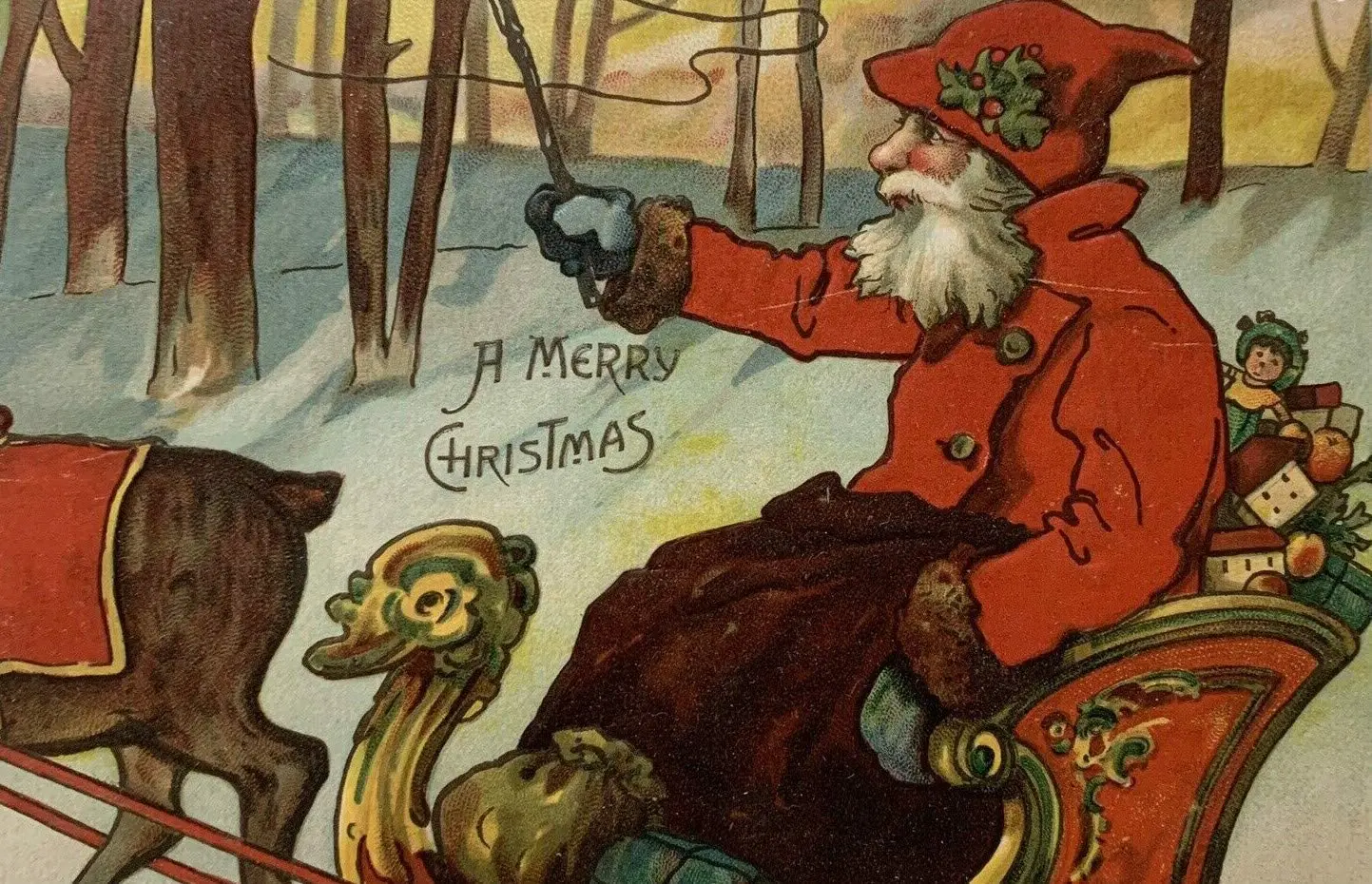 Старинные сани, голова страуса, Рождество, Германия, нет красивых Ретро металлических знаков, бар, кафе, домашнее настенное украшение, мужская пещера 8x12 дюймов