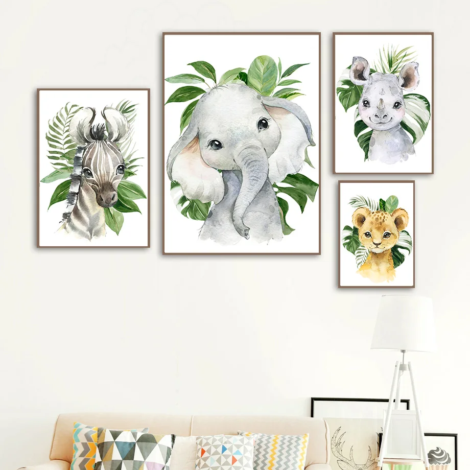 Слон жираф кролика, енота лиса детская стена искусство холст картин...