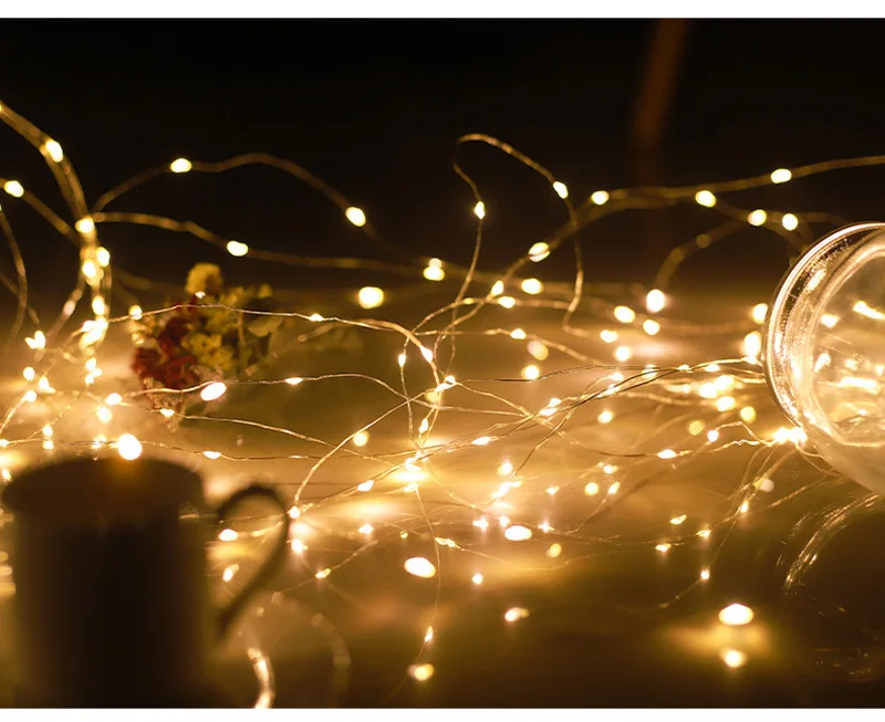 Светодиодная гирлянда из серебристой проволоки, Сказочная гирлянда, домашняя Рождественская елка, свадебная занавеска, украшение для вечеринки, праздничное освещение