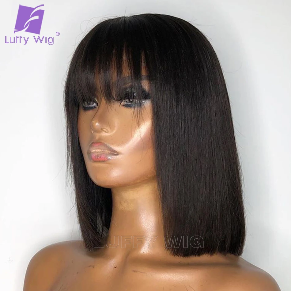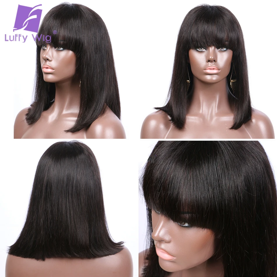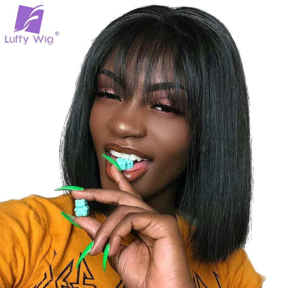 Парики из человеческих волос с челкой Luffywig, 180% плотности
