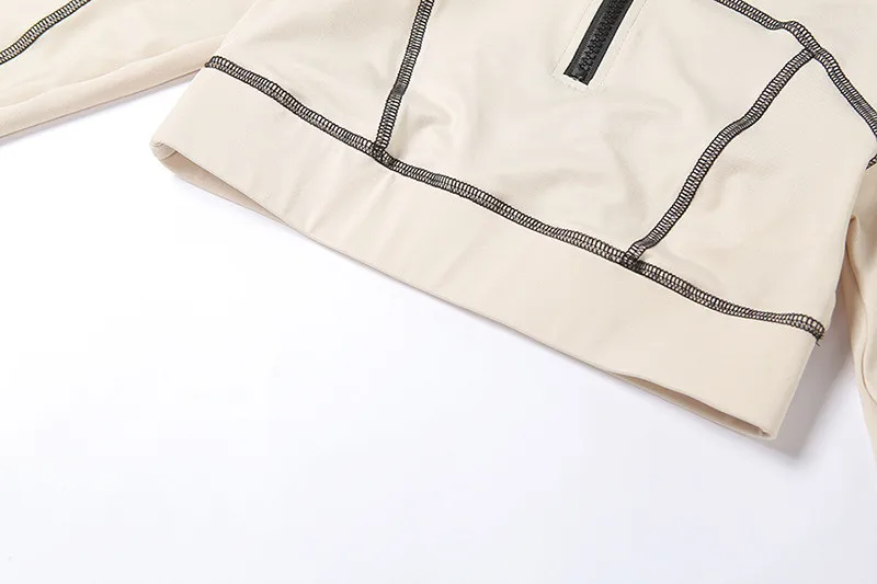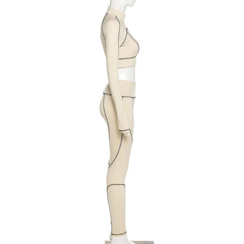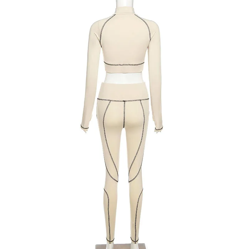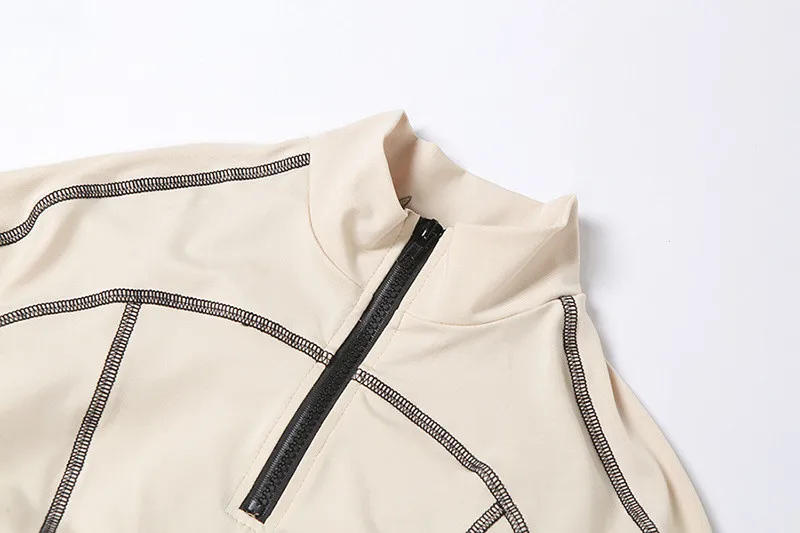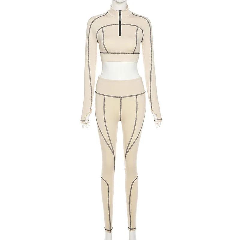 Женский комплект из двух предметов, повседневный укороченный топ в полоску на молнии + леггинсы с высокой талией, комплекты для тренировок, спортивный комплект из 2 предметов