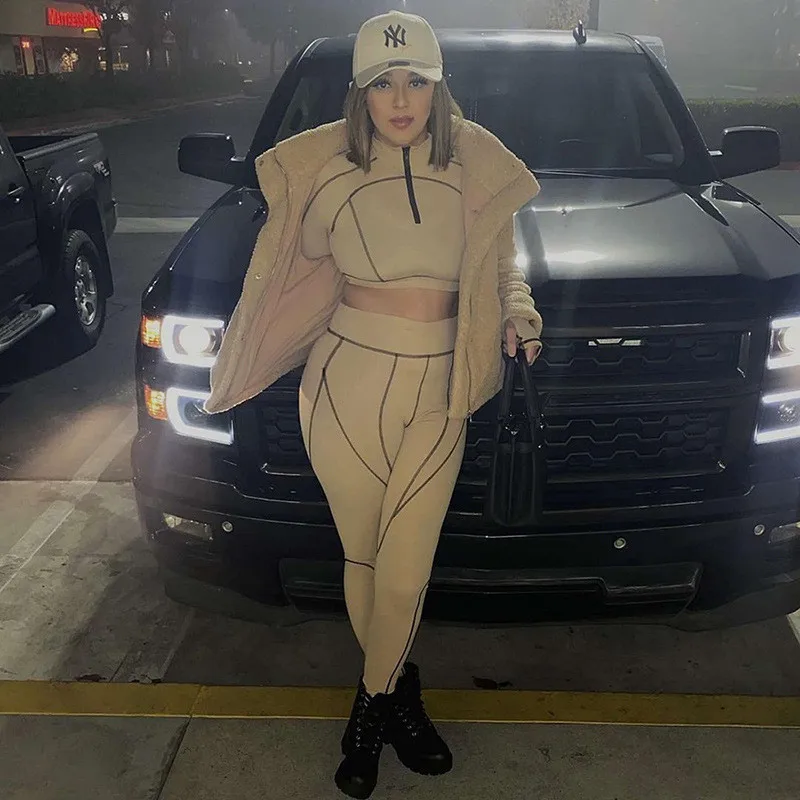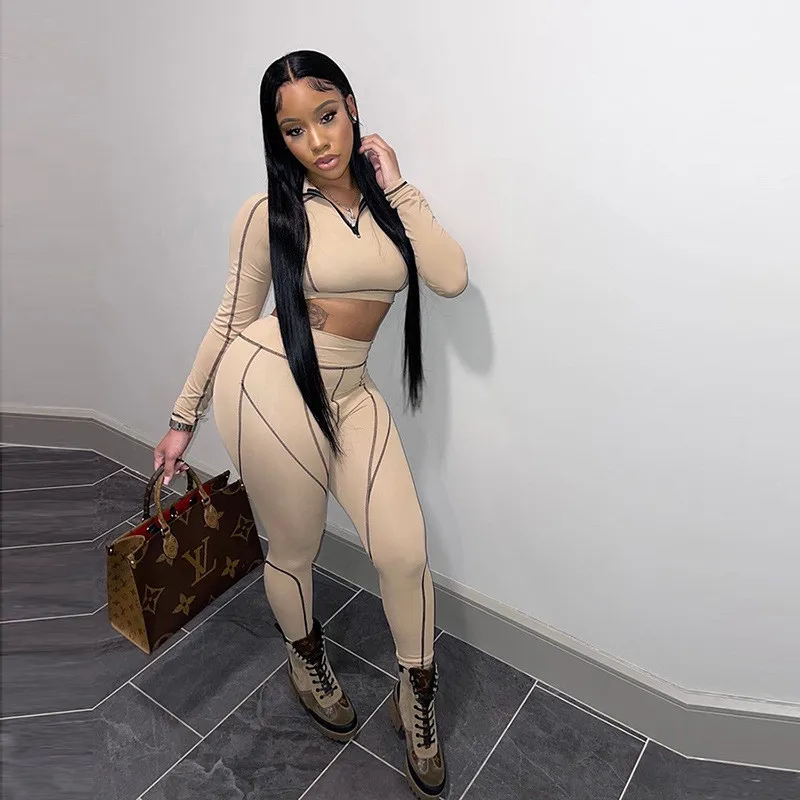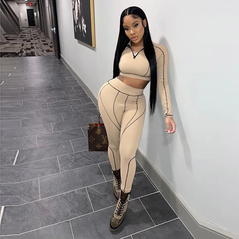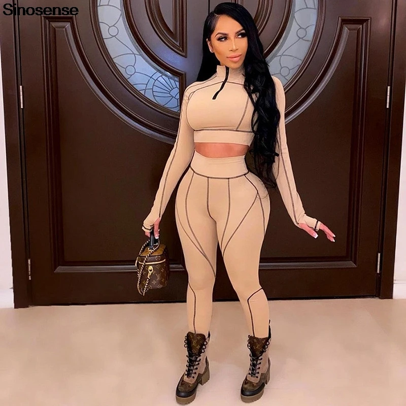 Женские туфли из двух частей, комплект повседневной одежды в полоску, с молнией, укороченный топ + леггинсы с высокой талией в комплекте комплекты Узкие Тренировки Спортивный комплект одежды из 2 предметов