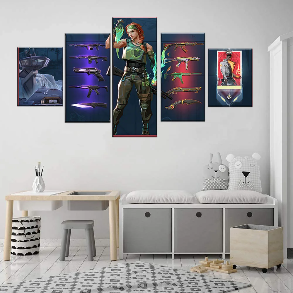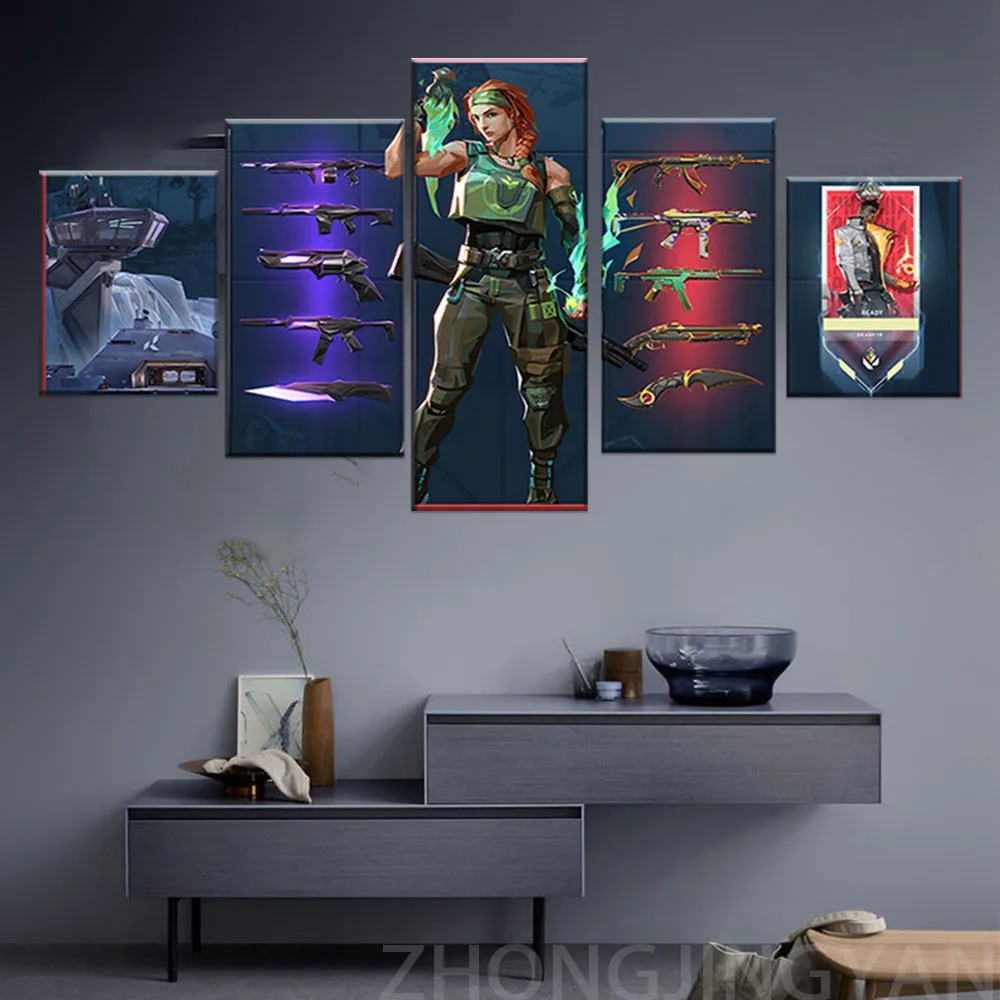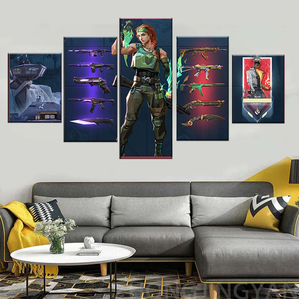 5 панелей Скай, валорант, игровой плакат, Картина на холсте, настенное искусство, домашний декор, плакаты и принты, украшение гостиной