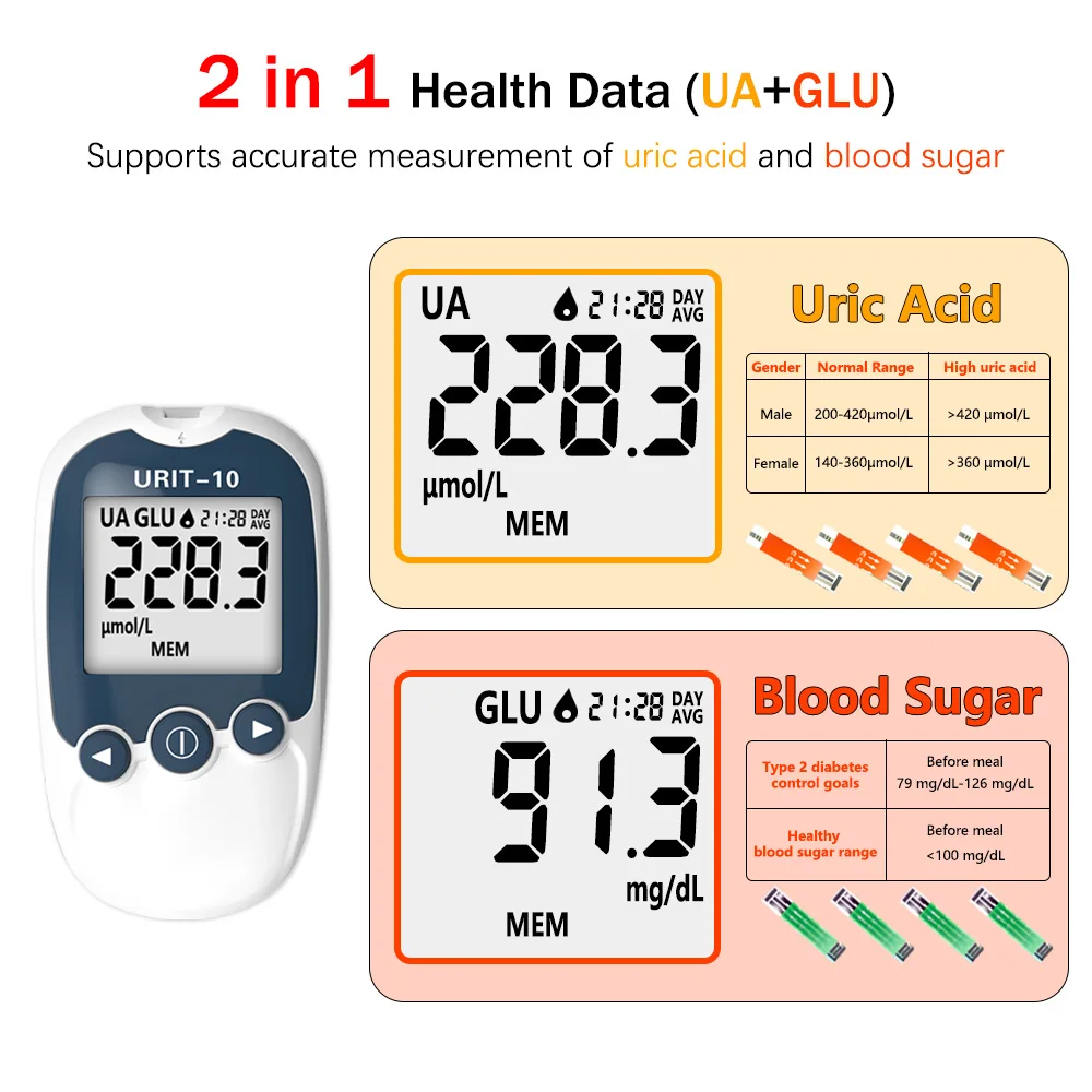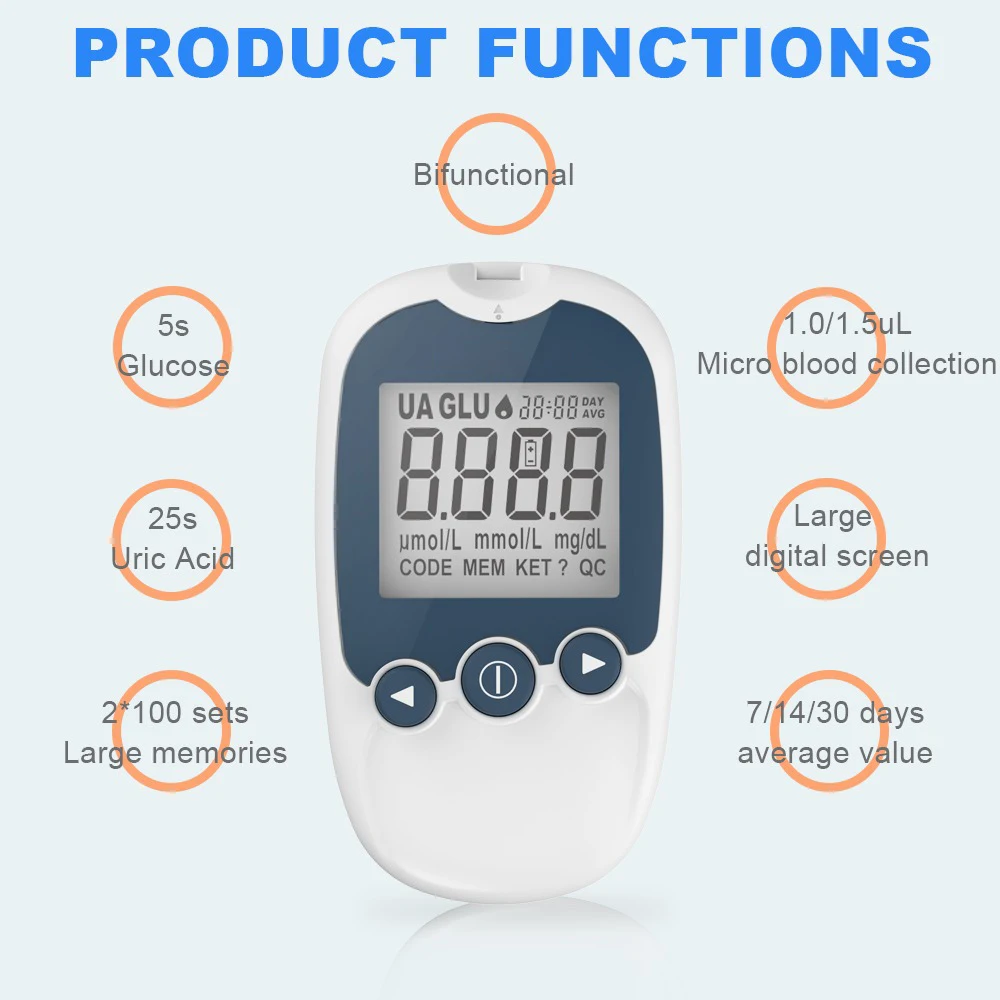 Многофункциональный прибор для измерения уровня глюкозы в крови и мочевой кислоты, прибор для измерения уровня сахара в крови