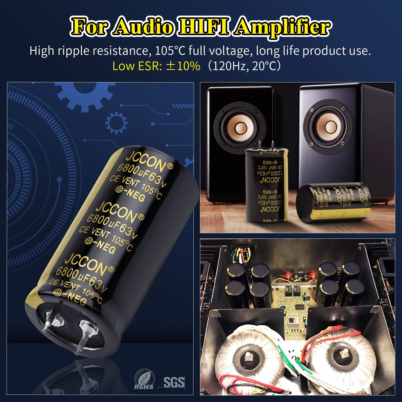 Электролитический конденсатор JCCON, 25 в, 35 в, 63 в, 100 в, 200 в, 250 В, 400 В, 450 мкФ, 6800 мкФ, 10000 мкФ, для усилителя Hifi Low ESR, 2 шт.