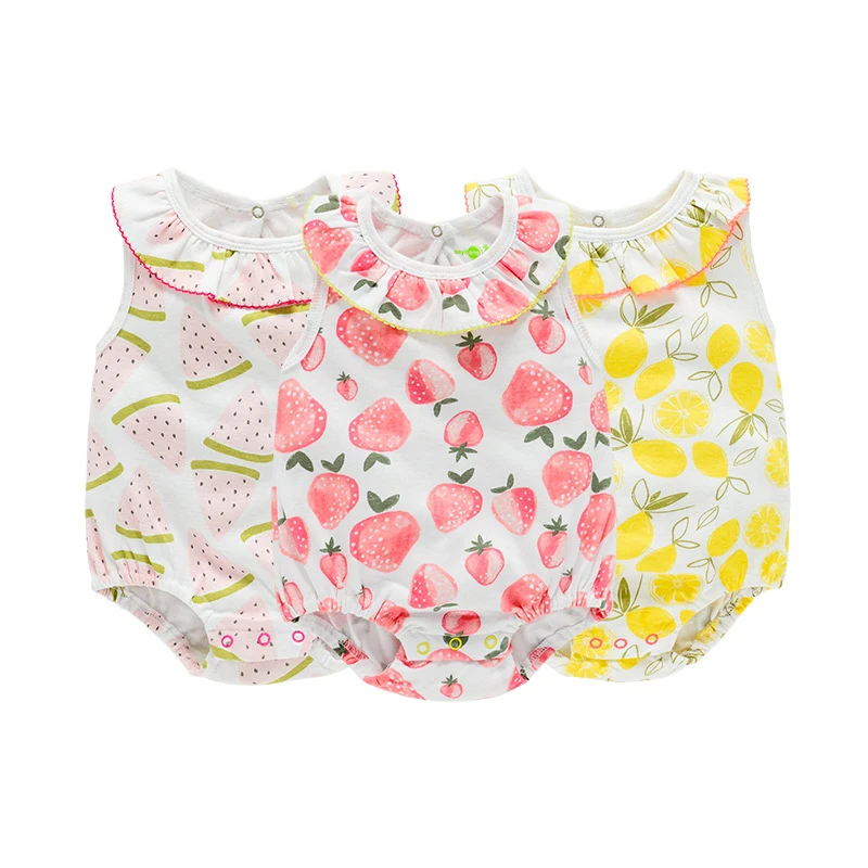 Keescewow Детский треугольный комбинезон из 100% хлопка, модное Боди без рукавов с фруктовым принтом для маленьких девочек