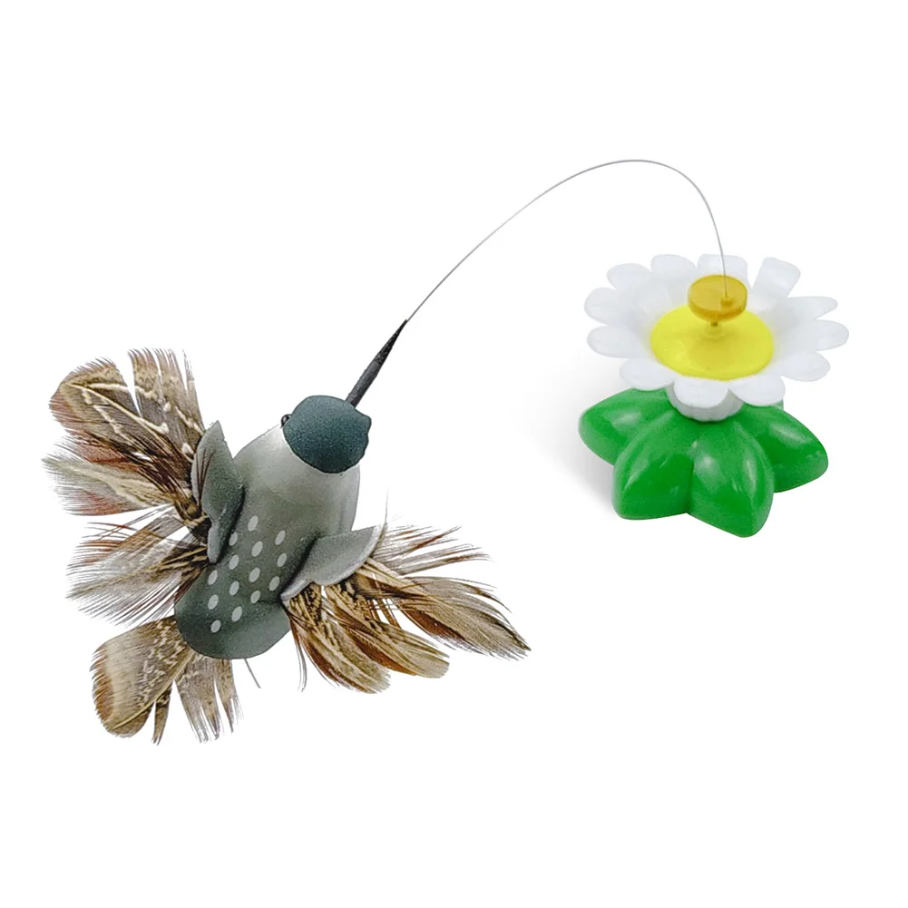 Электрическая игрушка для кошек, вращающаяся птица, игрушка для кошек, веселая интерактивная игрушка для упражнений, котенок, игрушки для домашних животных с цветами и зелеными листьями
