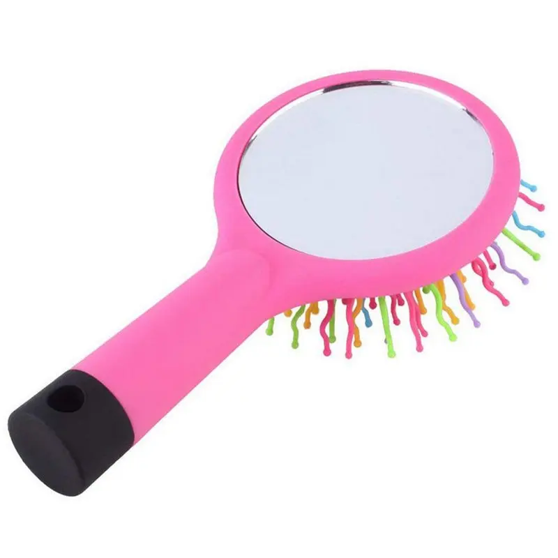 Расческа для волос с радужным объемом, Антистатическая Волшебная щетка для завивки волос, прямая Массажная щетка с зеркалом (розовый)