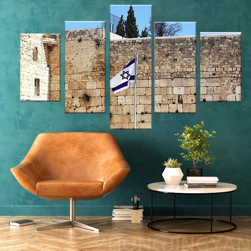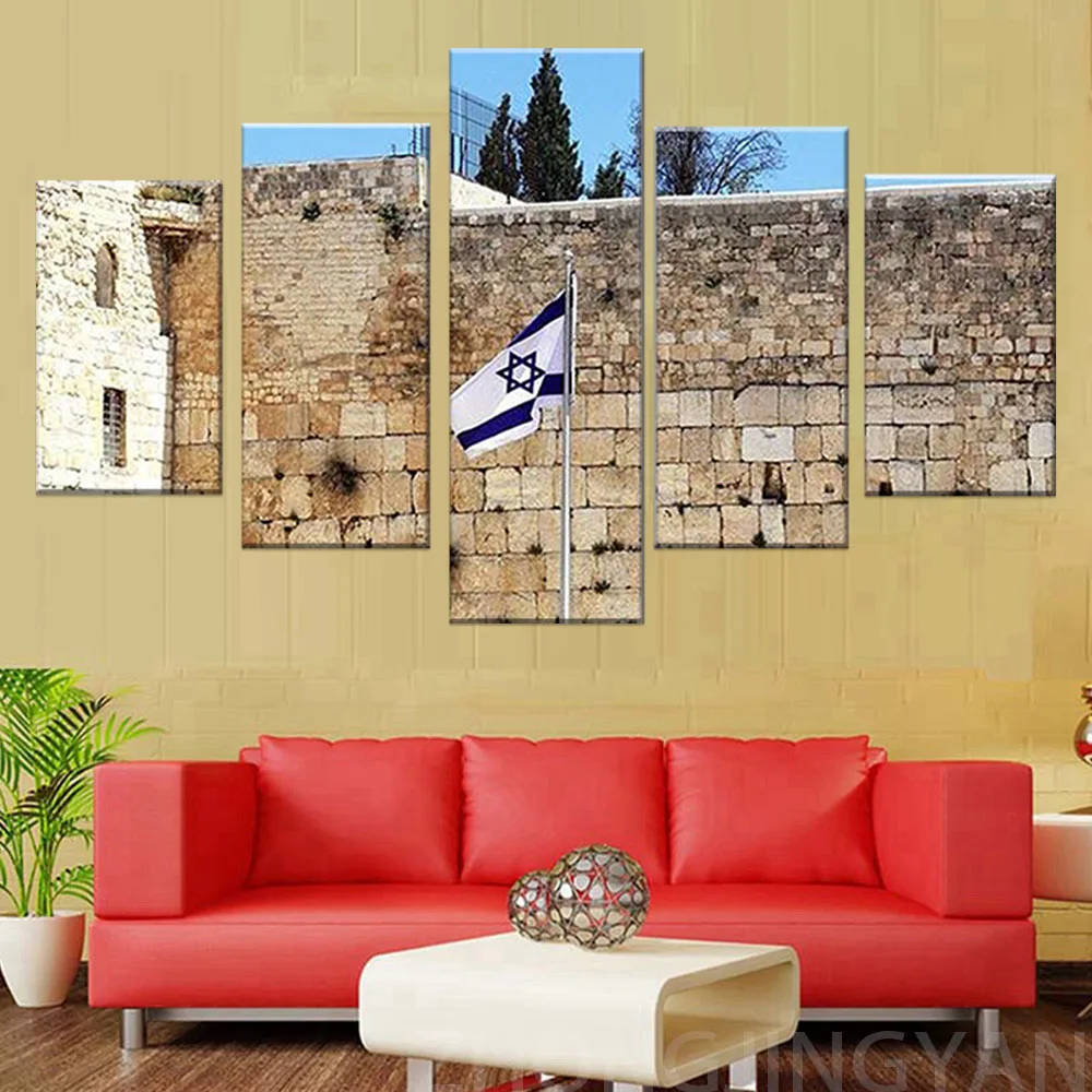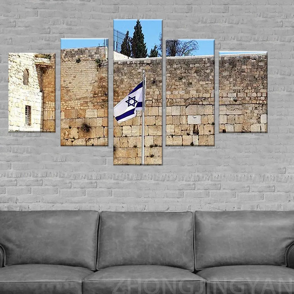 5 шт. дома Иерусалима стены искусства отпечатки декора Израиля западной стены (Национальный флаг) плача настенные картины Гостиная украшения