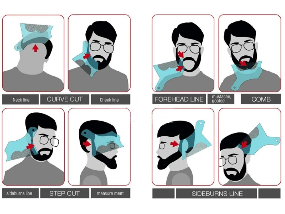 Получите желаемую форму-этот удивительный шаблон для волос на лице поможет вам придать форму линии щеки, линии шеи, линии челюсти, усов, бороды, бакенбарды и многое другое. Он даже имеет различные стили-Кривая или шаг вырезать для вашей щеки, например. Выберите тот, который вам подходит!