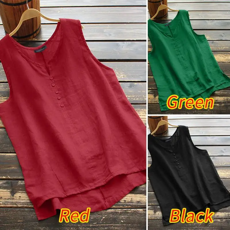 Посылка входит: 1 блузкаМатериал: 100% хлопокЦвета: черный, зеленый, красныйРазмер: S,M,L,XL,2XL ,,,Длина рукава: без рукавовВырез горловины: круглый вырезРисунок: однотонныйЦепочка с пряжкой: спереди на пуговицах (украшение)Толщина: тонкаяОсобенности: Высокий Низкий, чистый хлопокСтиль: Досуг, ретро, Европа, универсальный, литератураСезон: весна, лето, осеньПовод: семья вечерние, пляж, свадьба, праздник, работа