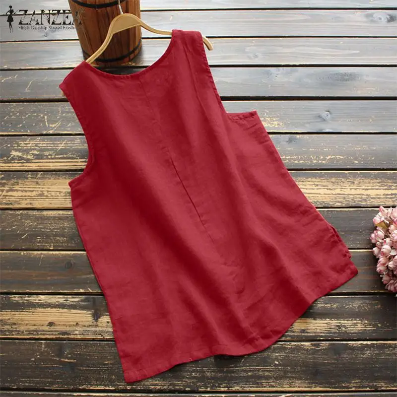 Блузка ZANZEA Женская однотонная, винтажный Повседневный Топ без рукавов, необычная сорочка 7, лето 2021
