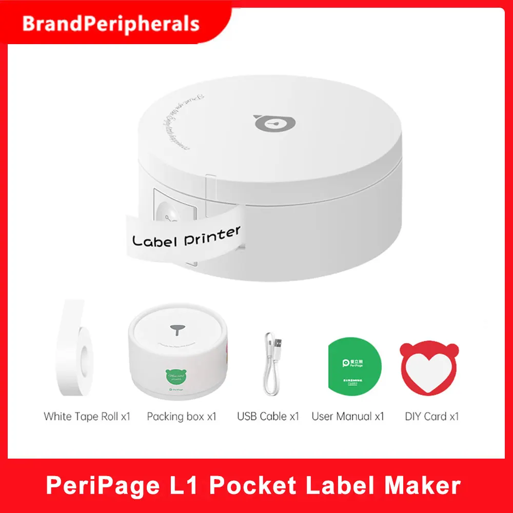 Карманный принтер для этикеток PeriPage L1, портативный принтер для этикеток без чернил, совместим со смартфоном на базе iOS и Android