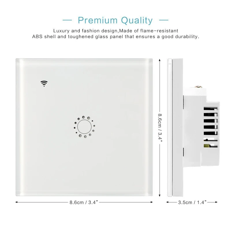 Интеллигентая (ый) Wi-Fi Сенсорный настенный выключатель: This1 / 2 / 3The Gang сенсорный выключатель поддерживает максимум мощность 2200 Вт, которая может работать с большинства ламп и других электрических приборов. Он может управлять 3 устройствами одновременно. Размер: 3,4 (Д) * 3,4 (Ш) * 1,4 (в) дюйма, напряжение переменного тока 90-250 В.