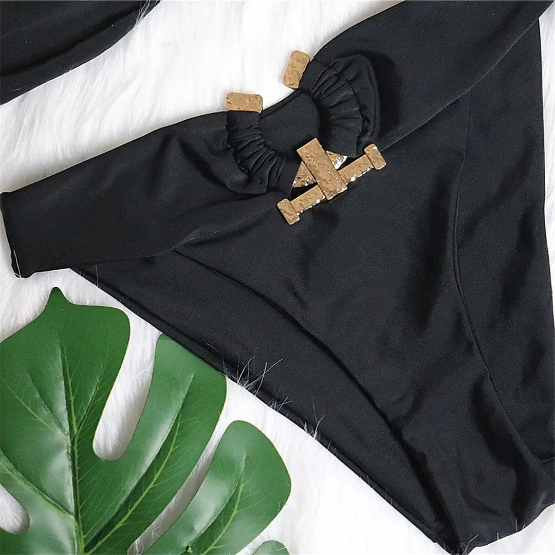 Сексуальное однотонное черное бикини, 2021, женский, с открытыми пл...