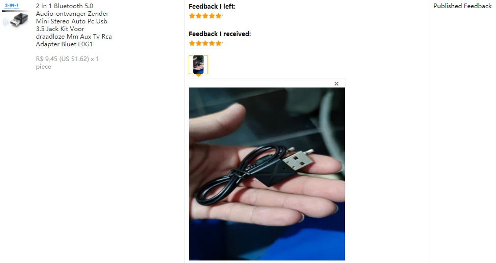 1X Bluetooth-адаптер для аудиопередатчика/приемника 5,01x3,5 мм Aux кабель1x Руководство пользователя